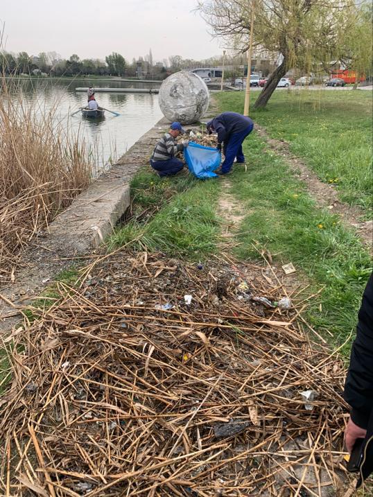 Timp de două săptămâni, o echipă formată din 9 muncitori, cu ajutorul unei bărci din dotare, cu o autoutilitară, o basculantă, un buldoexcavator au colectat și evacuat deșeurile ajunse în apă în diverse puncte ale lacului. Deșeurile menajere sunt aruncate direct în apă sau în zona de uscat și prin acțiunea vântului sunt transportate pe suprafața de apă.