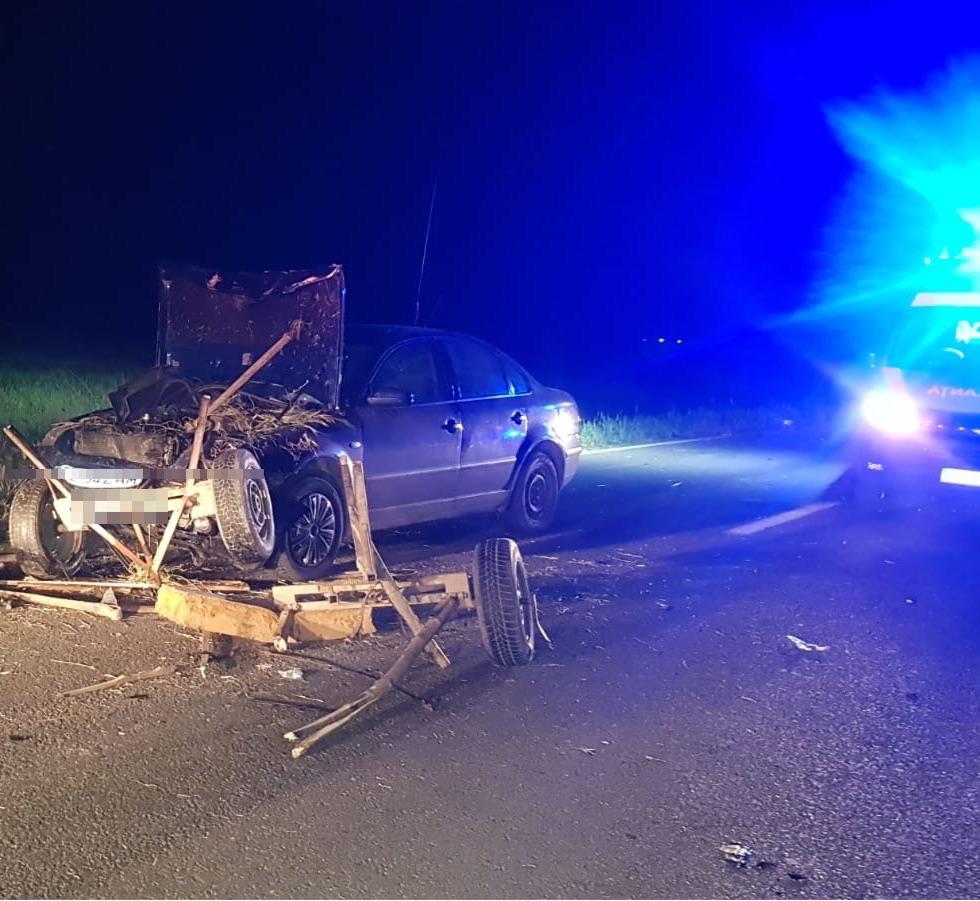 TULCEA/FOTO: Căruță lovită de un autoturism. Un bărbat a decedat, altul a fost rănit