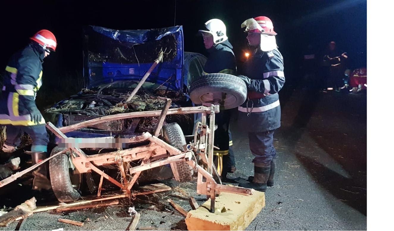 La locul intervenției, pompierii au găsit două victime ale accidentului produs între un autoturism și o căruță, ambele aflându-se în atelajul hipic.