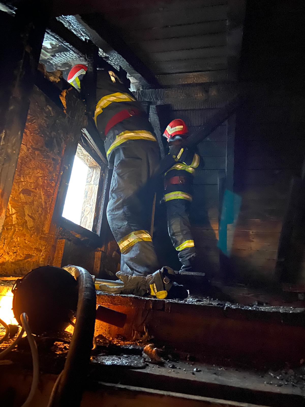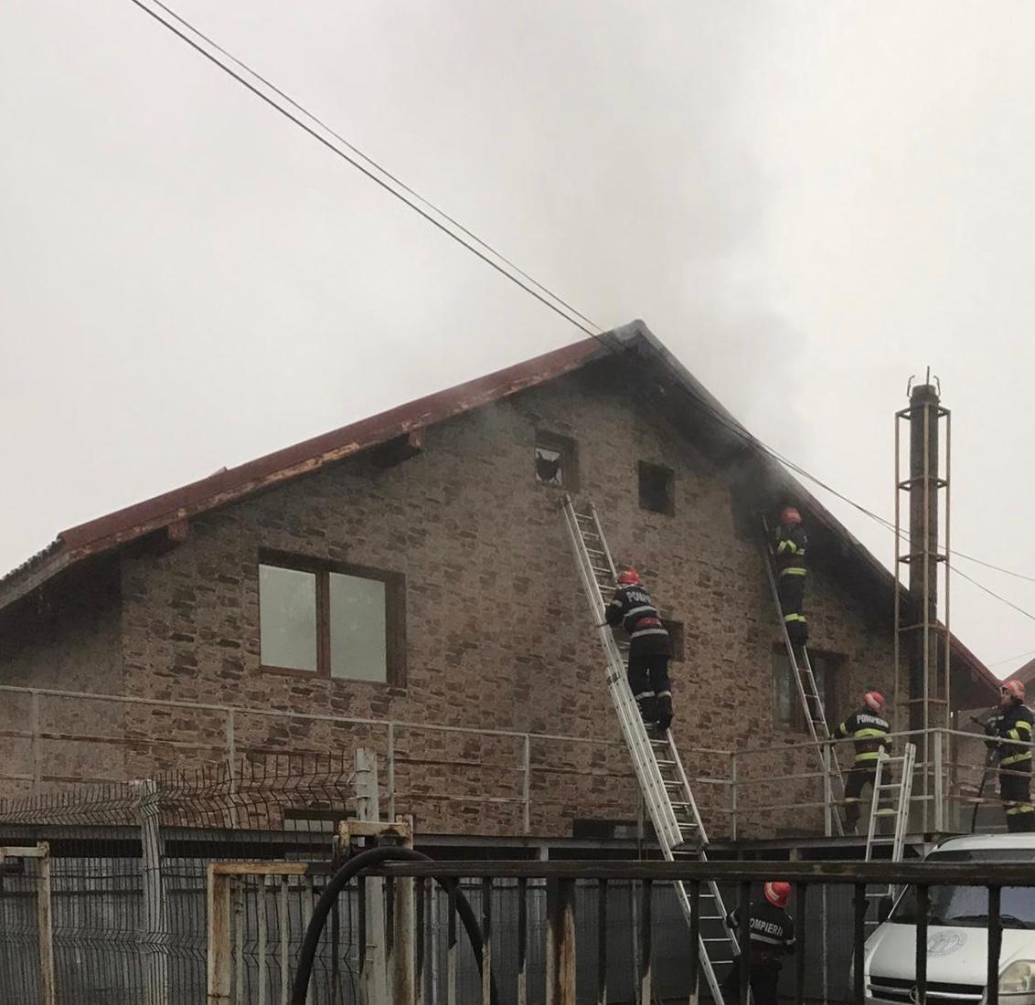 La momentul sosirii pompierilor militari, incendiul se manifesta la acoperișul locuinței, iar persoanele din interiorul clădirii s-au autoevacuat.