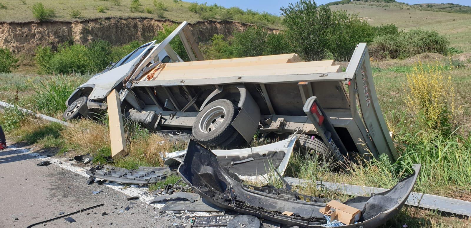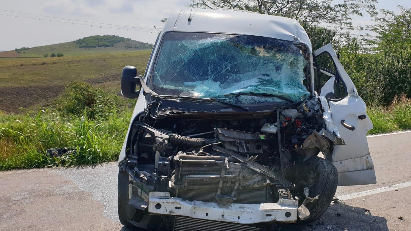 În urma accidentului a rezultat rănirea conducătorului primei autoutilitare.