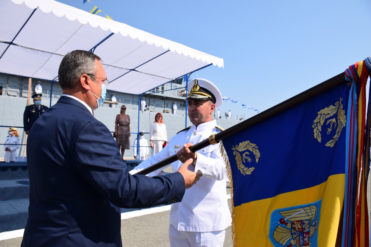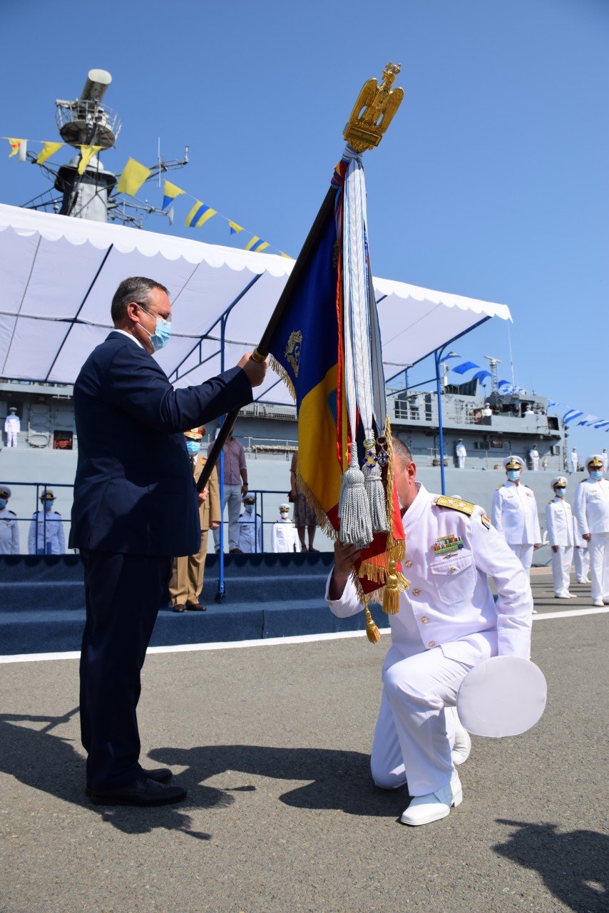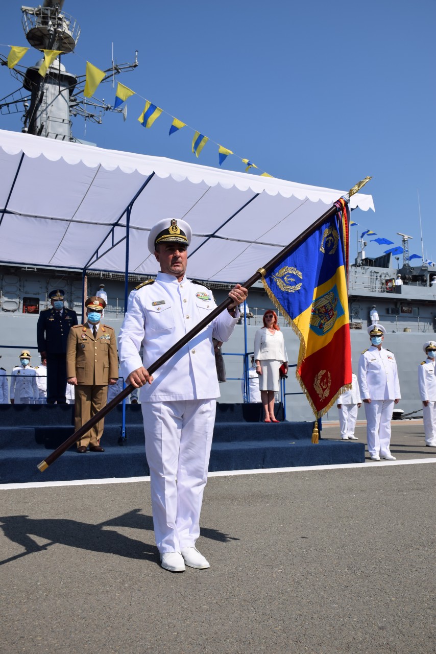 În continuare, a fost prezentat ordinul ministrului Apărării Naţionale, prin care contraamiralul Mihai Panait, comandantul Flotei, a fost împuternicit şef al SMF, după care acesta a preluat drapelul de luptă al instituţiei de la predecesorul său.