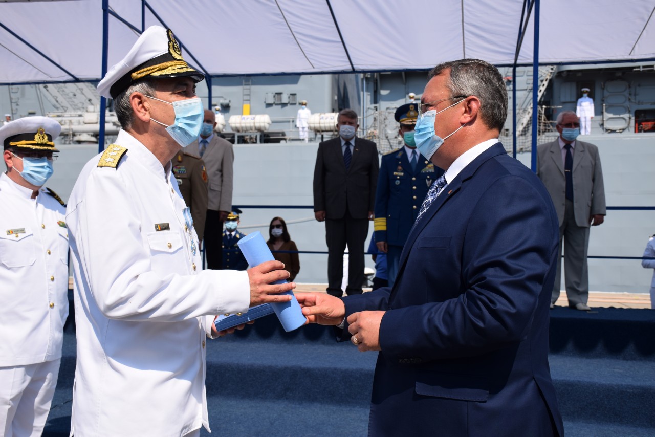Ceremonia de predare-primire a conducerii Forţelor Navale Române s-a desfăşurat în prezenţa unei audienţe reduse, în concordanţă cu respectarea măsurilor de prevenire a infectării cu noul coronavirus, la festivitate fiind prezenţi şefii statelor majore ale Forţelor Terestre şi Forţelor Aeriene, şefi ai unor structuri centrale din MApN, foşti şefi ai Statului Major al Forţelor Navale şi comandanţi de mari unităţi din Marina Militară Română.
