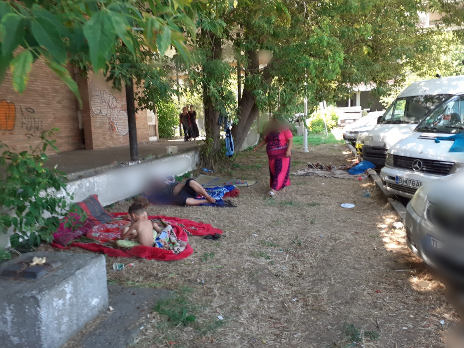 Grupul, format din adulți și minori, se instalase confortabil în stațiune, întinzând pe trotuare pături și perne.