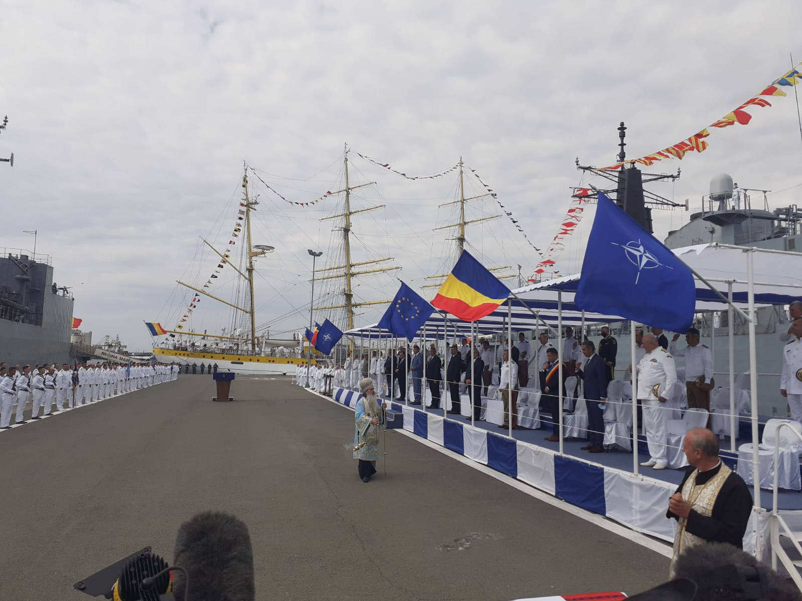 Potrivit organizatorilor, evenimentele de la Constanţa vor începe la ora 9.55 cu întâmpinarea preşedintelui Klaus Iohannis, iar după trecerea în revistă a gărzii de onoare, la ora 10,00, este programat ceremonialul ridicării Pavilionului, Geacului şi a Marelui Pavoaz la bordul navelor militare, odată cu intonarea imnului de stat şi cu executarea a 21 de salve de tun. În continuare, va fi oficiat serviciul religios, care va fi urmat de alocuţiunea şefului statului.