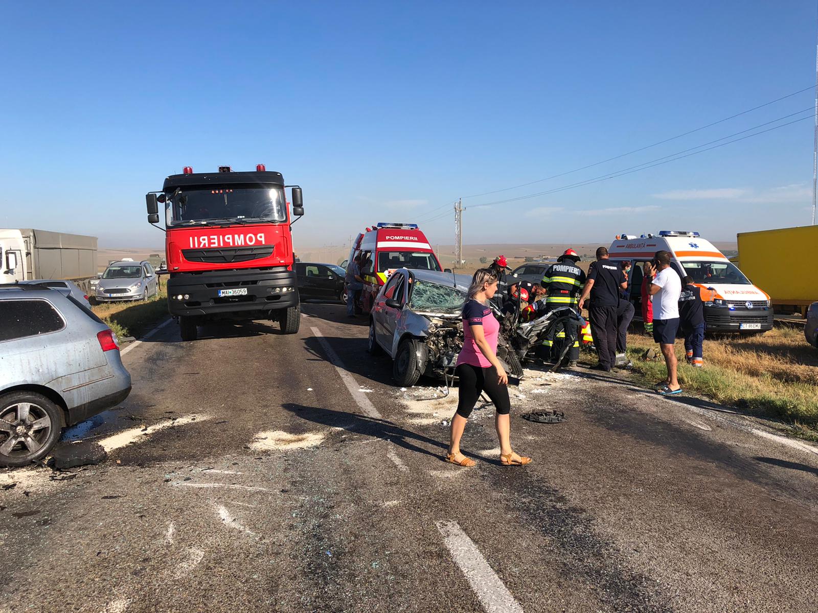 Pompierii Stației Hârșova au intervernit cu o autospecială de stingere cu modul de descarcerare și o ambulanță SMURD B, alături de o ambulanță SAJ.
