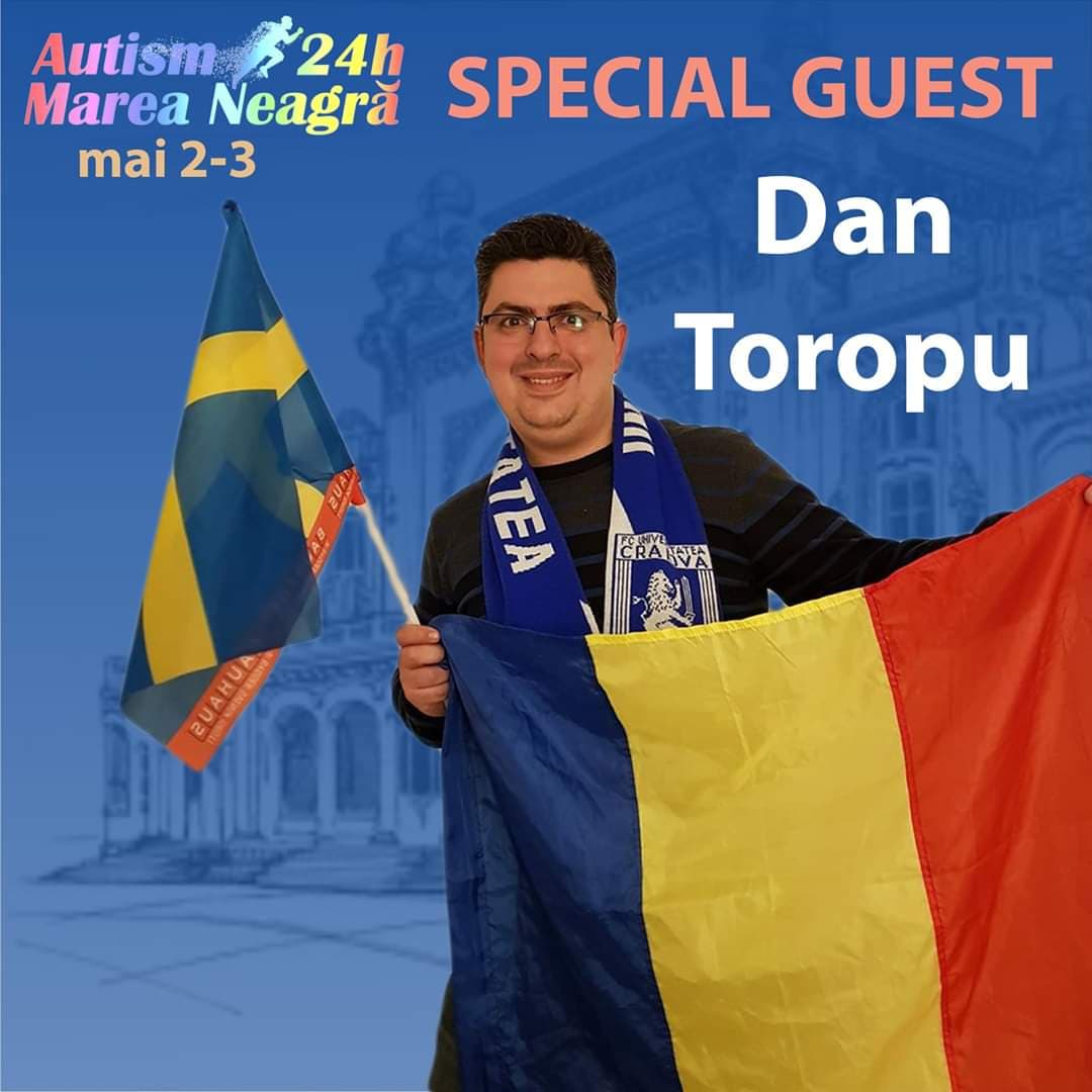 Dan Toropu : Acum un an am descoperit că mă pot implica foarte mult ca voluntar la Centrul Psihologic „Marea Neagră“ condus de domnul Adrian Gemănaru și am avut o primă vizită anul trecut cu colegi de la o școală din Suedia și ne-am implicat la plaja terapeutică din Mangalia. A fost inaugurată pe 1 iunie 2019. Apoi am observat că există aceste curse de ultramaraton care vin în ajutorul copiilor și al acestor cauze. Așa am reușit să mă implic. Prima oară pe 2 și 3 mai a fost o cursă tot ultramaraton 24 de ore. Am alergat prima oară 24 de ore pentru copiii cu autism și pentru diferite proiecte care vor facilita practic lucrul cu acești copii. A venit firesc următorul pas. Adrian Gemănaru m-a întrebat dacă mă pot implica în ultramaratonul din septembrie. Am strâns o echipă frumoasă în jurul meu, de români stabiliți de mulți ani în Suedia și am alergat pentru copii cu autismde la Centrul „Marea Neagră“ dar și pentru Școala Gimnazială „Ion Minulescu“ din Constanța. Vrem să dăm curții școlii un „aer nordic“. Prietenii mei români și suedezi s-au implicat cu mare plăcere iar rezultatul a fost unul neașteptat. Pentru societatea suedeză copilul este centrul. El înseamnă viitorul, înseamnă tot. Numai la simpla prezentare a proiectului au răspuns afirmativ și toți cei care au putut fizic să fie alături de noi în acea zi au fost prezenți. Ceilalți ne-au urmărit și bineînțeles că au și donat pentru cauza noastră. Am reușit să strângem apeoximativ 28 de mii de lei. Ne-am fi dorit să strângem puțin mai mult, pentru a implementa cât mai multe proiecte. Dar suntem mulțumiți că acești bani vor schimba un viitor pentru câțiva copii, poate pentru o școală, de ce nu o mentalitate.