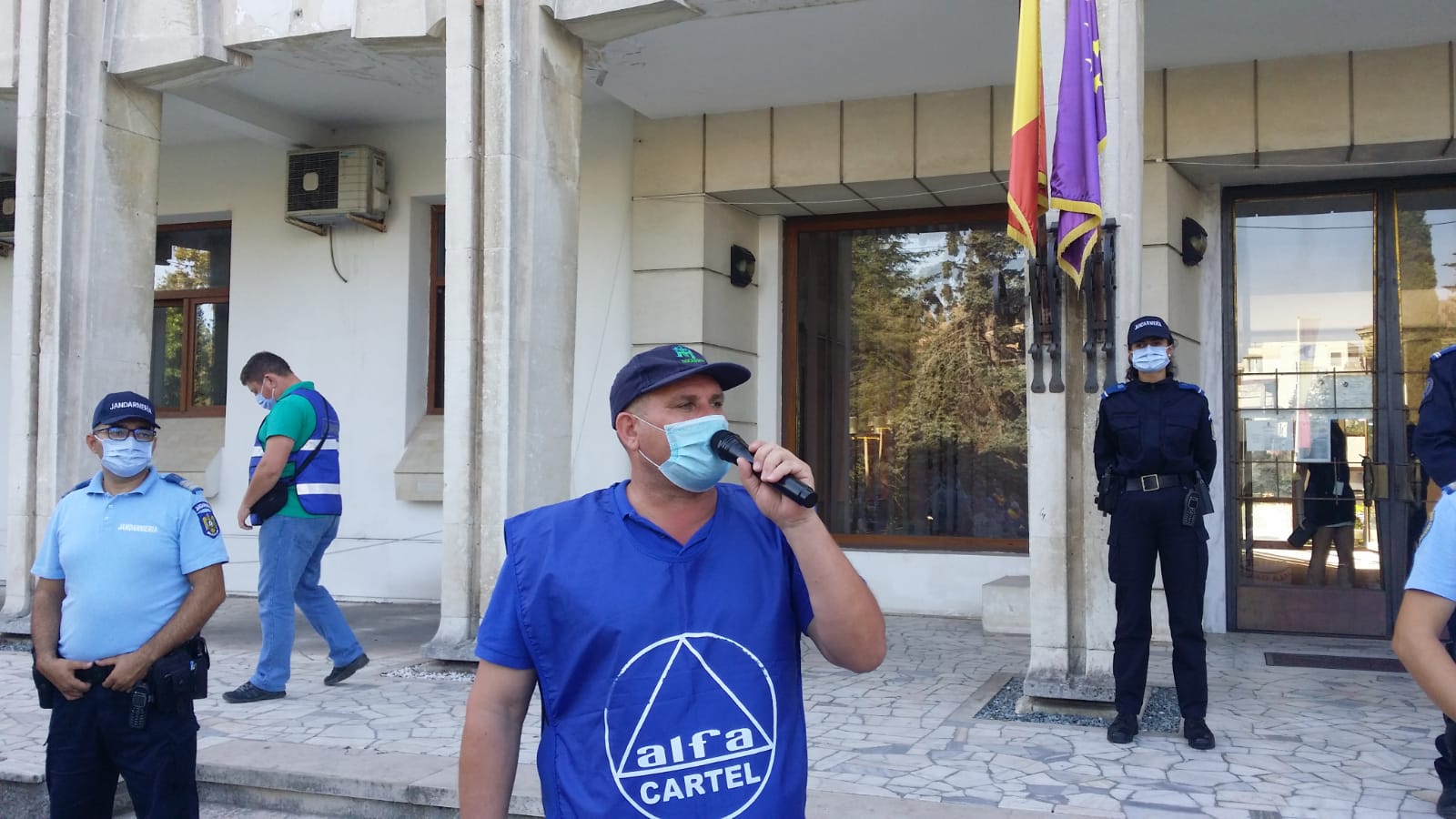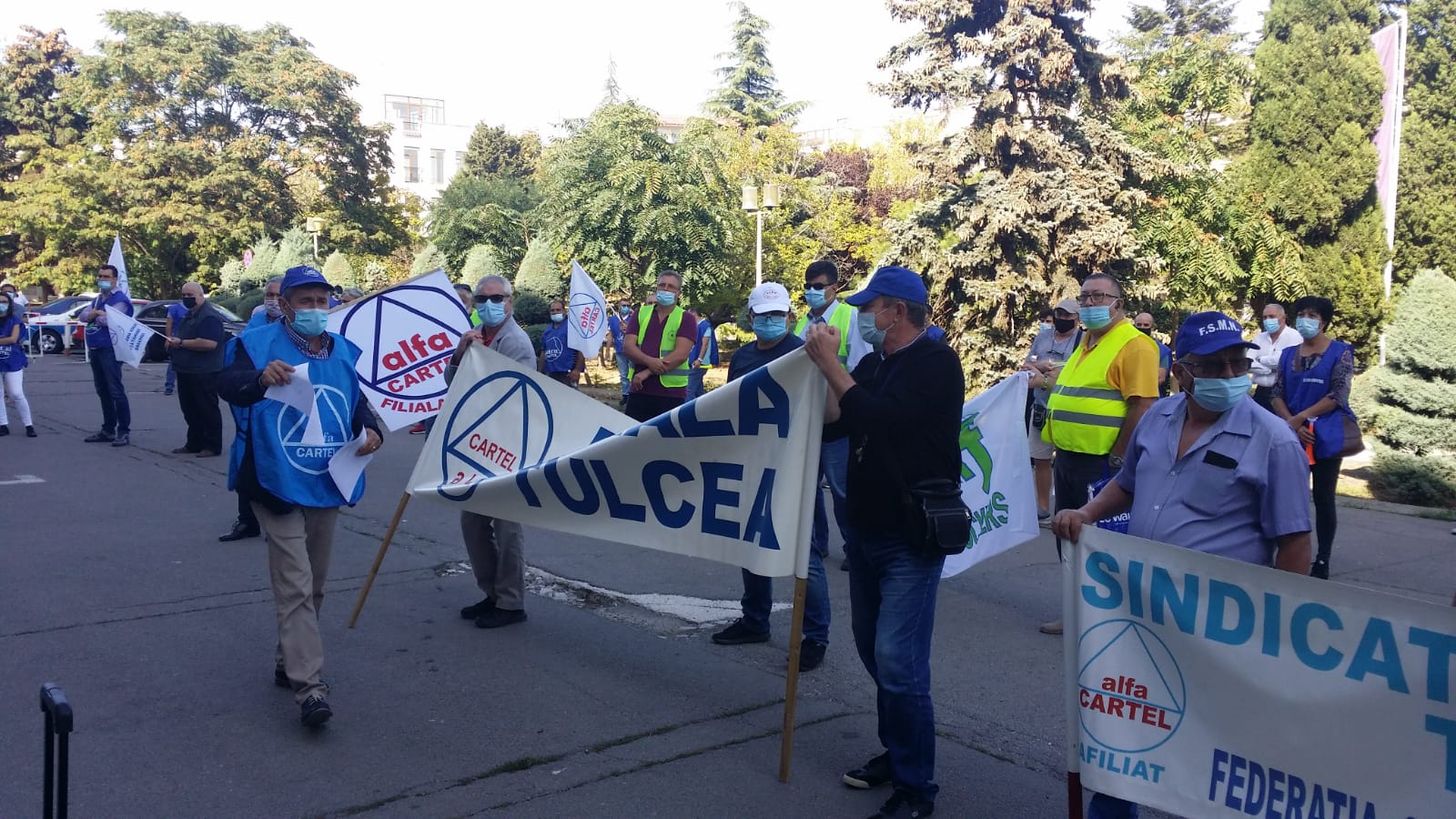 Sindicaliști de la Cartel Alfa din Constanța, Galați și Tulcea au protestat, astăzi, în fața Prefecturii Constanța