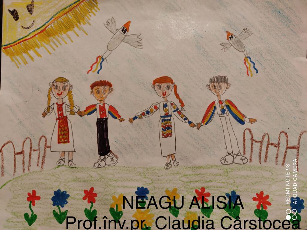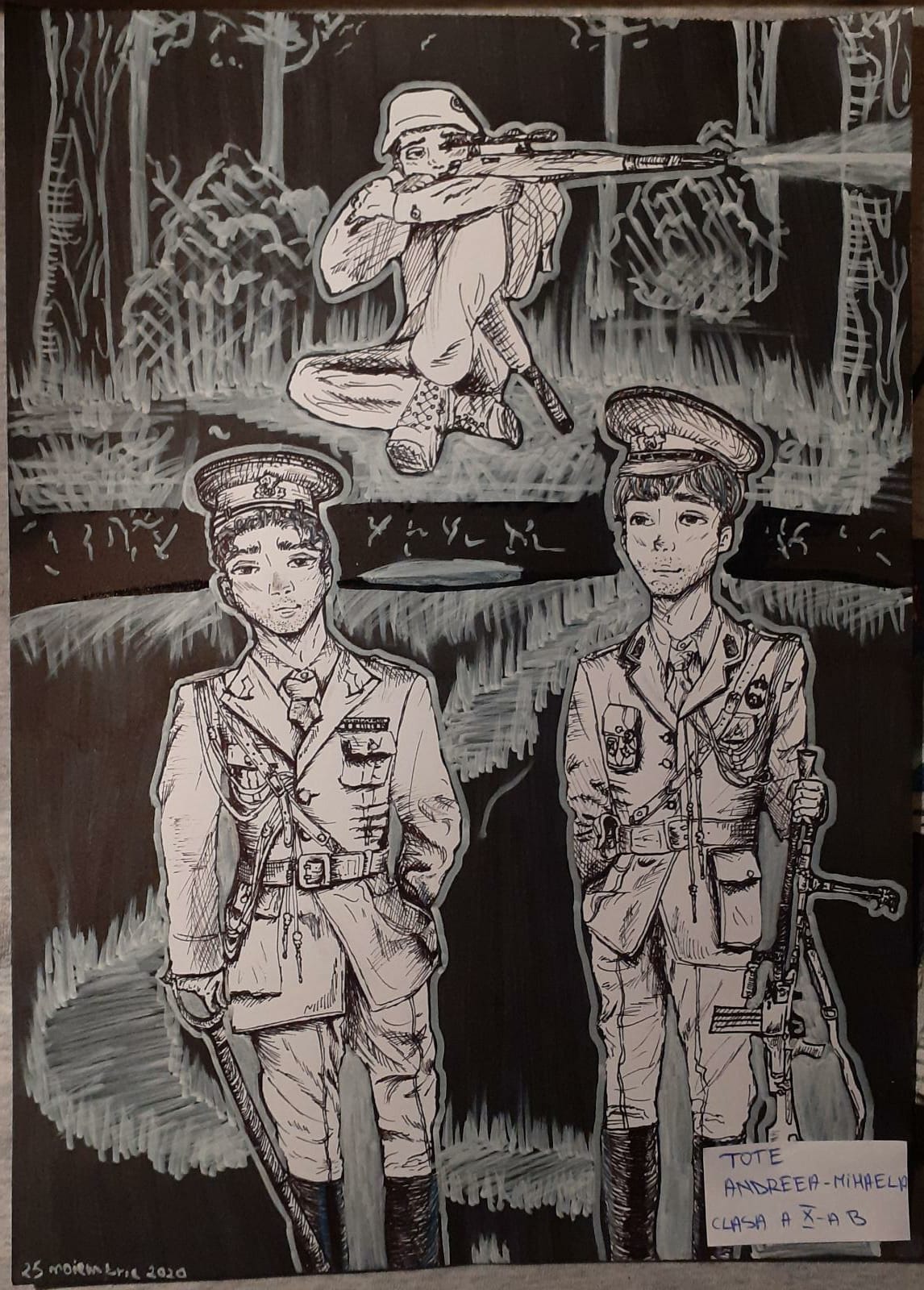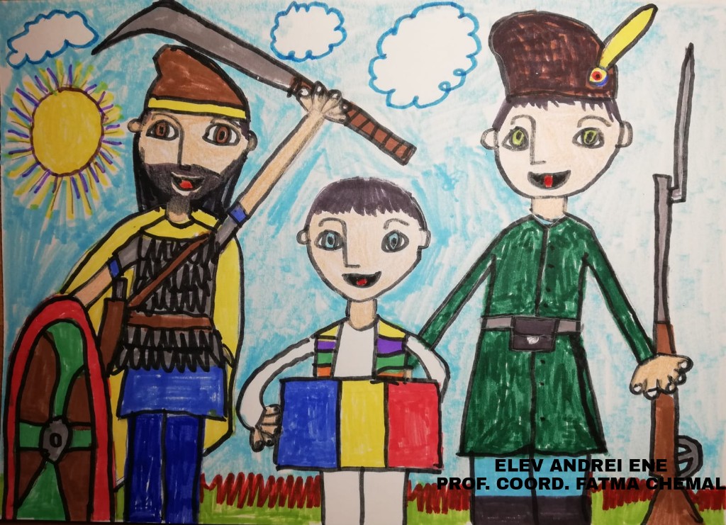 „Ideea de bază de la care a pornit realizarea acestei expoziții a fost să sărbătorim, în primul rând, ziua de 1 Decembrie. Această expoziție a fost una virtuală pentru că, din păcate, trebuie să prezentăm toate aceste lucrări în mediu online. Noi am intitulat expoziția „Recunoștintă veșnică eroilor neamului!”. Am plecat de la ideea de a colora, în primul rând, faptele de vitejie ale soldaților noștri, fie că au fost strămoșii noștri daci, fie că au fost dacii din Războiul Independent, din cele două Războaie Mondiale, practic toți cei care și-au jertfit viața pentru apărarea patriei. La realizarea acestei expoziții am avut sprijinul „Asociației Culturale Tomis” care ne-a îndrumat și, de altfel ei și colaborează cu școala noastră, cu sfaturi legate de echipamentele militare din acele timpuri și tot ceea ce a însemnat informație pe care am folosit-o în cadrul lucrărilor, care au necesitat un studiu istoric. Elevii care au participat în cadrul expozițiilor sunt elevi care au vârste cuprinse între 6 și 16 ani. Ei au fost îndrumați de doamnele învățătoare și de mine, în calitate de profesor de educație plastică”, spune Ene Bogdan, unul dintre îndrumtorii acestui proiect.