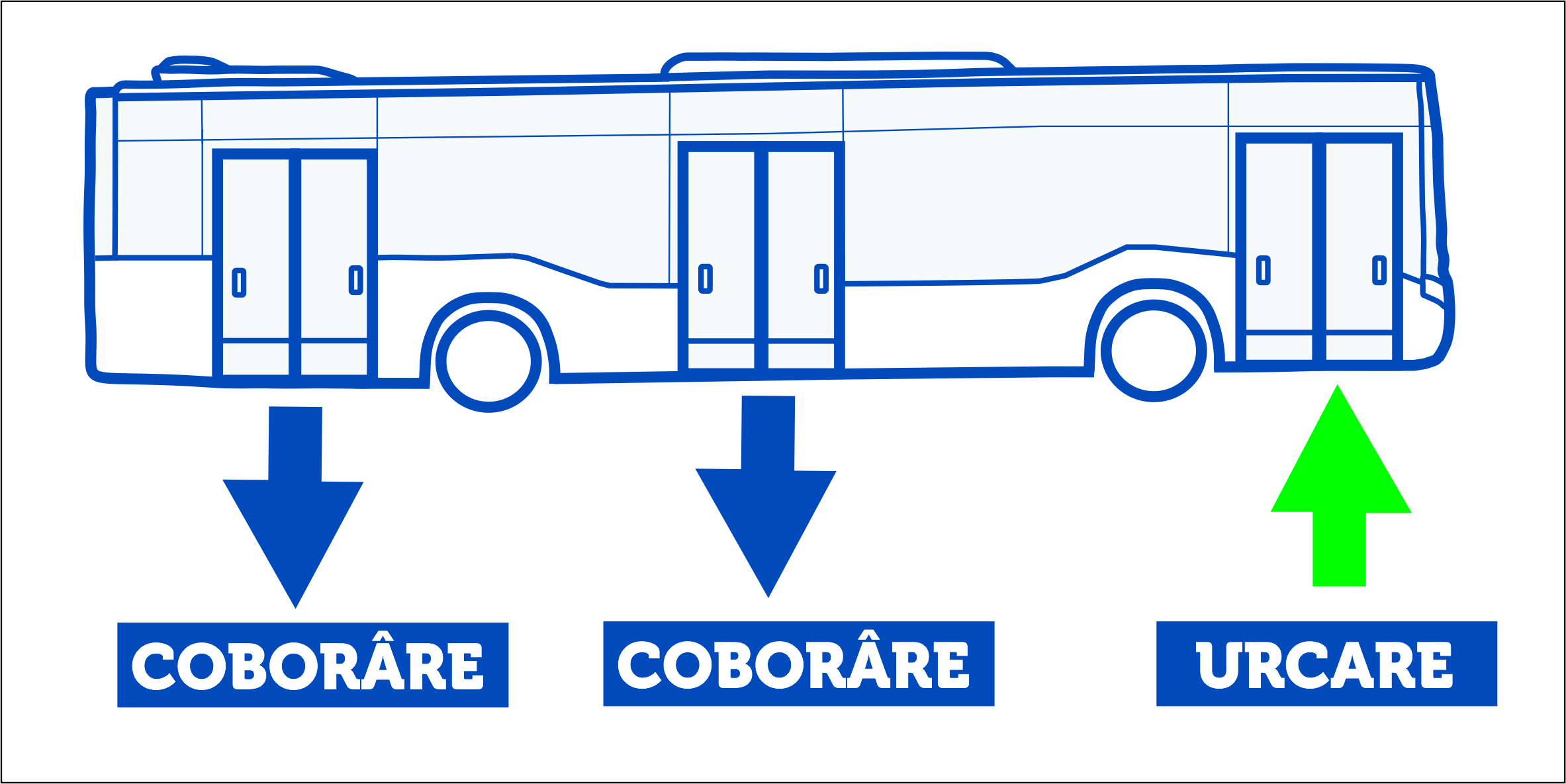 • coborârea din autobuz se va face pe la ușile 2 și 3.