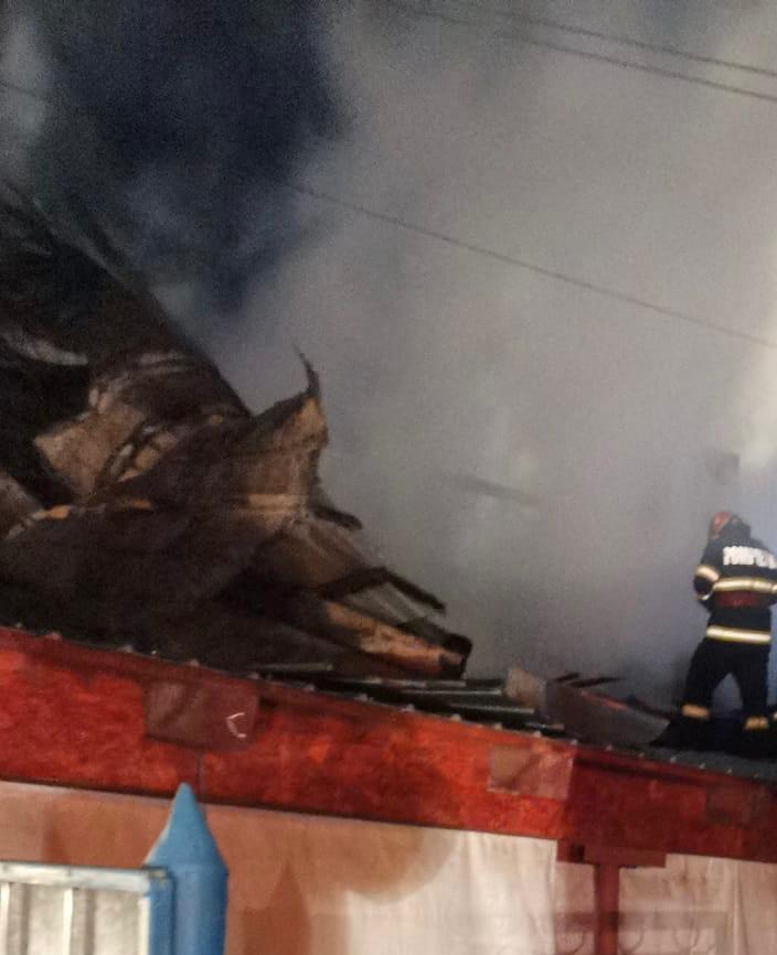 La momentul sosirii pompierilor incendiul se manifesta cu flacără la nivelul