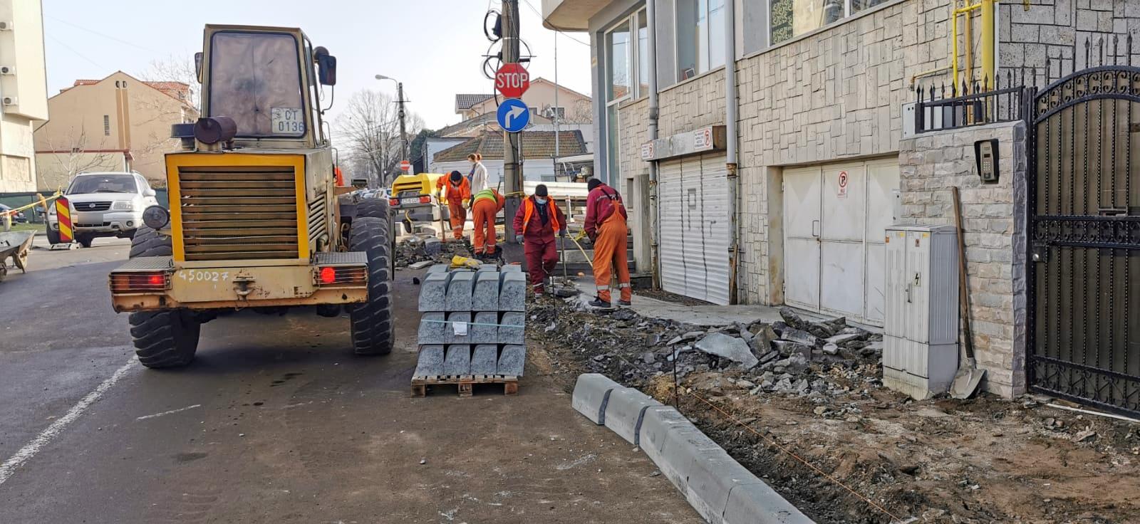 Conform graficului de lucru, continuă procesul de reabilitare a traseelor pietonale pe segmentul delimitat de bulevardul Mamaia și strada Chiliei. Se recondiționează infrastructura trotuarelor prin montare de borduri noi pe străzile Răchitași, Tabla Buții, Grozești și Onești. În paralel, pe strada Dragoslavele se decopertează suprafața pietonală și se demontează bordurile pentru a fi înlocuite cu unele noi.