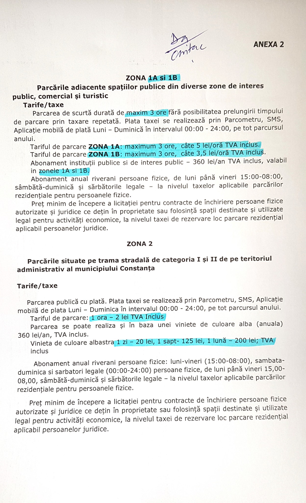 Am înțeles argumentele acelora dintre dumneavoastră care reclamă că o astfel de măsură poate produce efecte neplăcute pentru unii dintre constănțeni. De aceea, am decis să vin în fața dumneavoastră și a consilierilor locali cu o nouă propunere de zone tarifare. Am concentrat mai bine zona centrală și i-am redus tariful. Am creat o nouă zona intermediară cu tarif mai mic, și am redus proporțional restul prețurilor“, a scris primarul Vergil Chiţac.