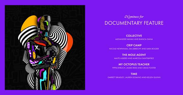 Pelicula a fost selectată în categoria ”cel mai bun documentar” alături de peliculele „Crip Camp”, „The Mole Agent”, „My Octopus Teacher” şi „Time”, iar la categoria „cel mai bun lungmetraj internaţional”, va concura cu producţiile ”Another Round” (Danemarca), ”Better Days” (Hong Kong), ”The Man Who Sold His Skin” (Tunisia) şi „Quo Vadis, Aida?” (Bosnia-Herţegovina).
