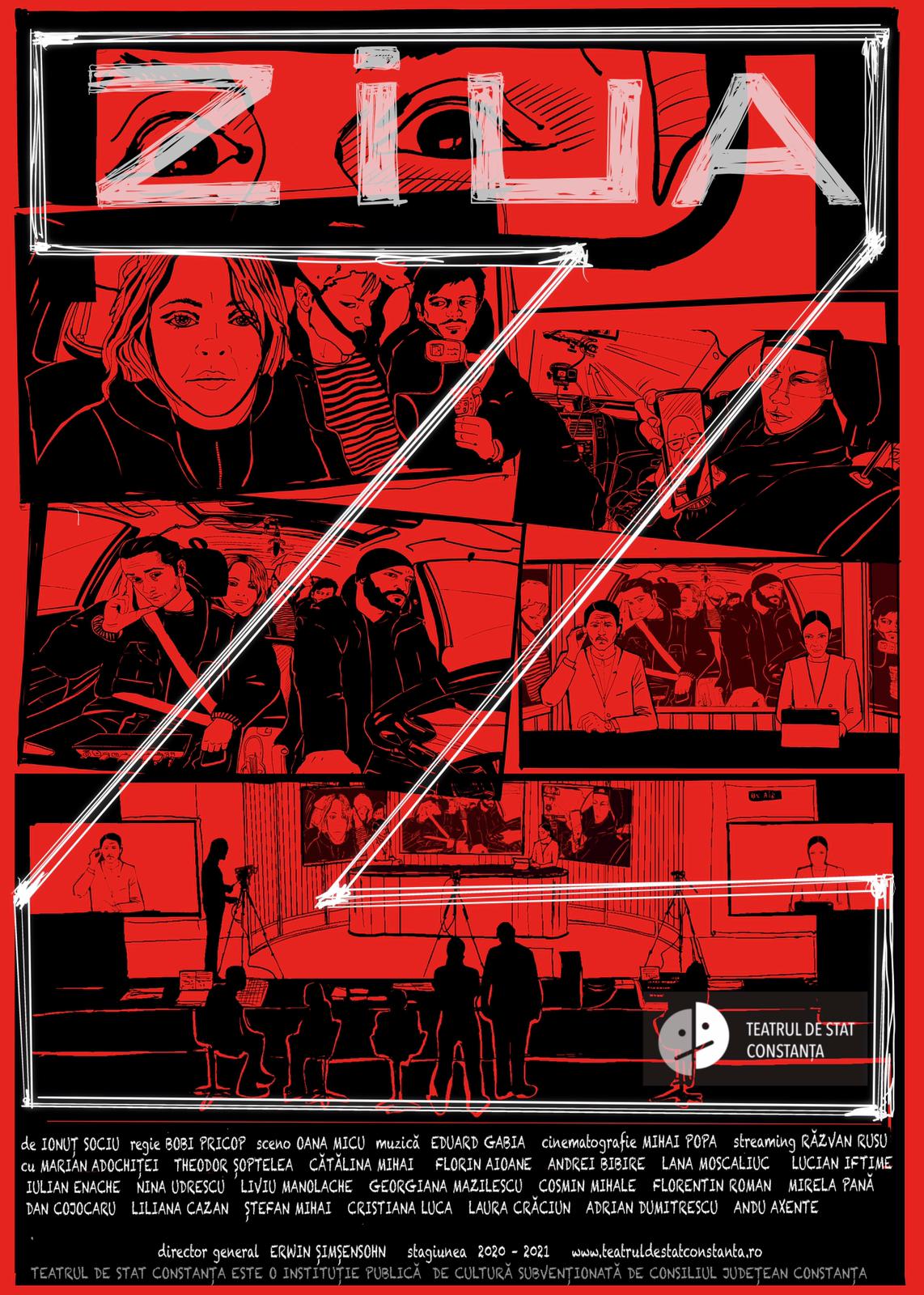 În 20 și 21 martie, de la ora 17.00, va avea premiera online un spectacol inedit al Teatrului de Stat Constanța (TSC), care îmbină elemente teatrale și cinematografice: „Ziua Z” de Ionuț Sociu, în regia lui Bobi Pricop. Spectacolul va fi transmis live, biletele putând fi achiziționate accesând link-ulhttps://www.mystage.ro/spectacole/ziua-z-2665 .