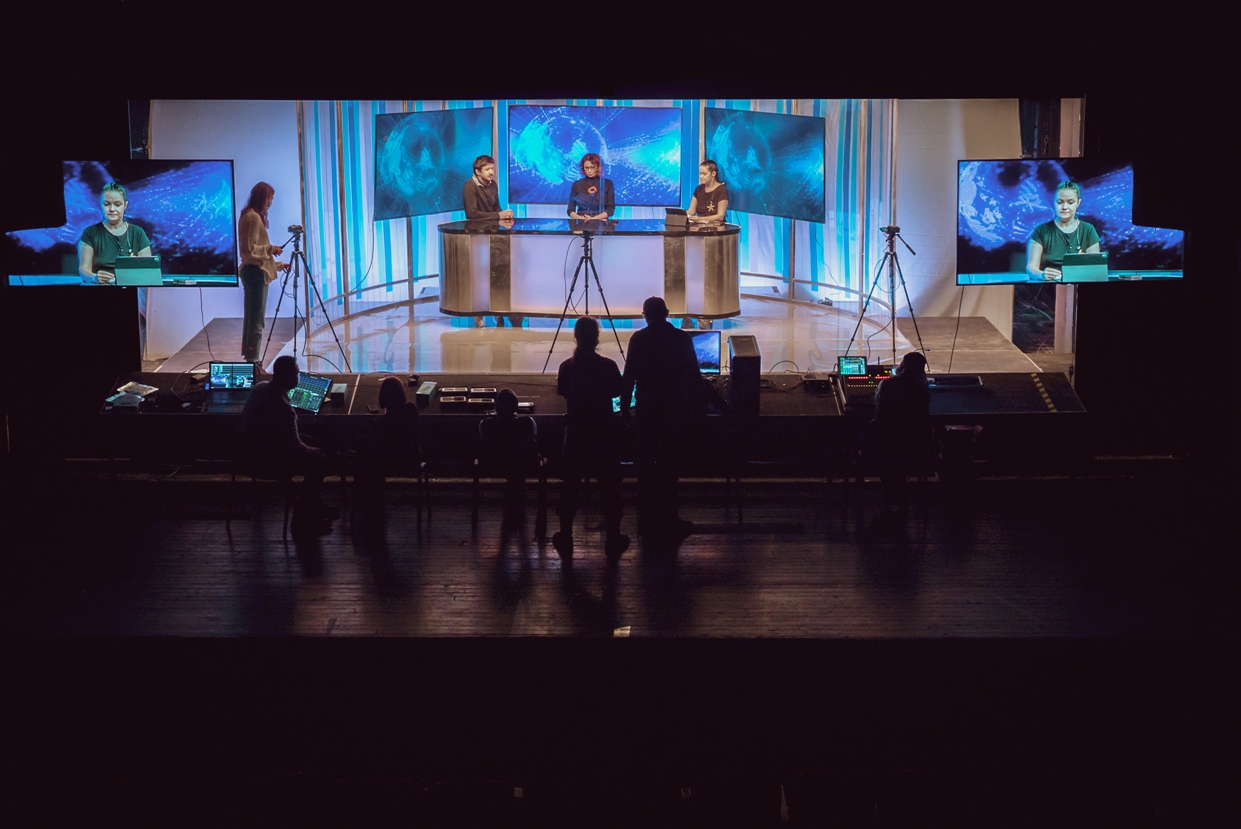 Spectacolul testează modurile prin care teatrul mai poate fi prezent și relevant în viețile noastre în acest moment (Constanța se află în scenariul roșu), propunând un concept artistic dinamic, adaptat realităților pe care le trăim. Montarea e construită pe două planuri – susținute de filmări live care se desfășoară atât într-o mașină care gonește pe străzile orașului, cât și în studioul unei televiziuni locale, aflate pe scena TSC.