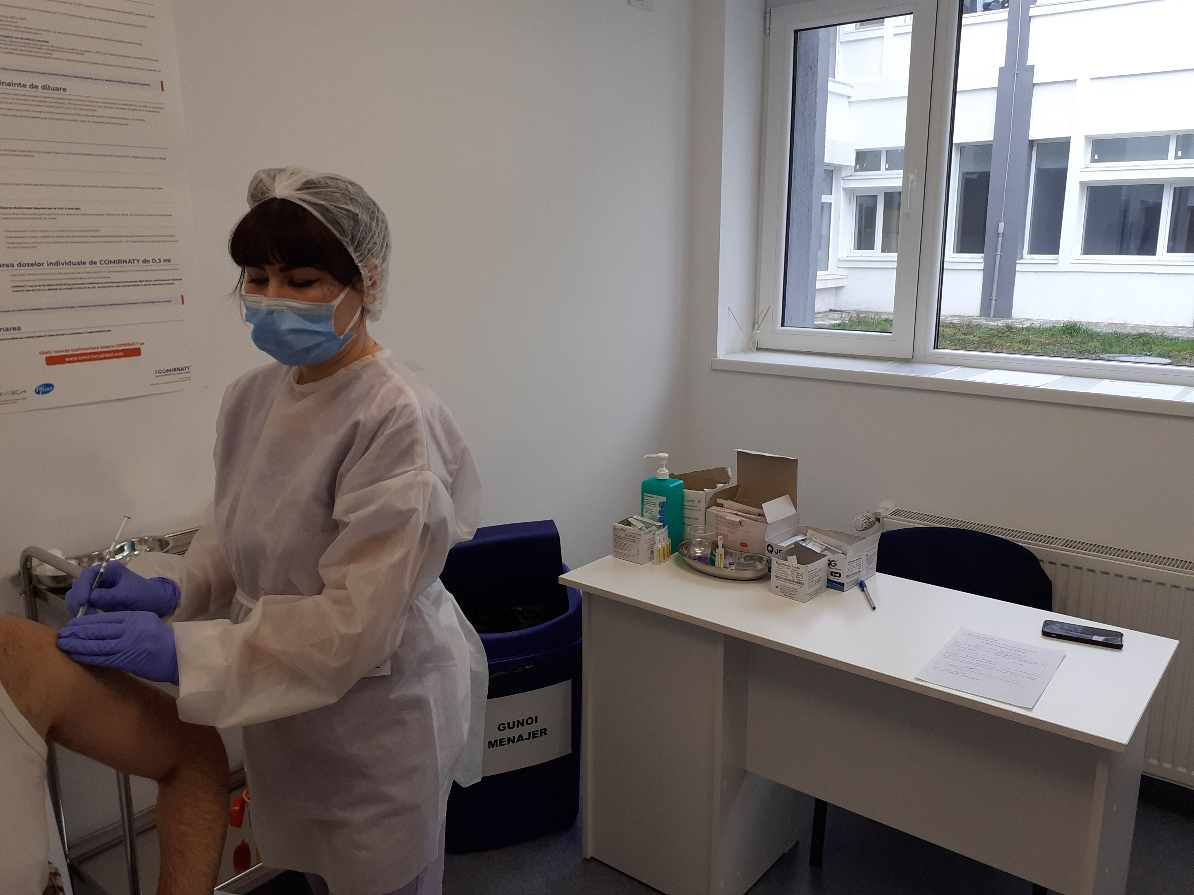 – Da, prima doză. Noi am ajuns, am intrat la grupul sanitar și…