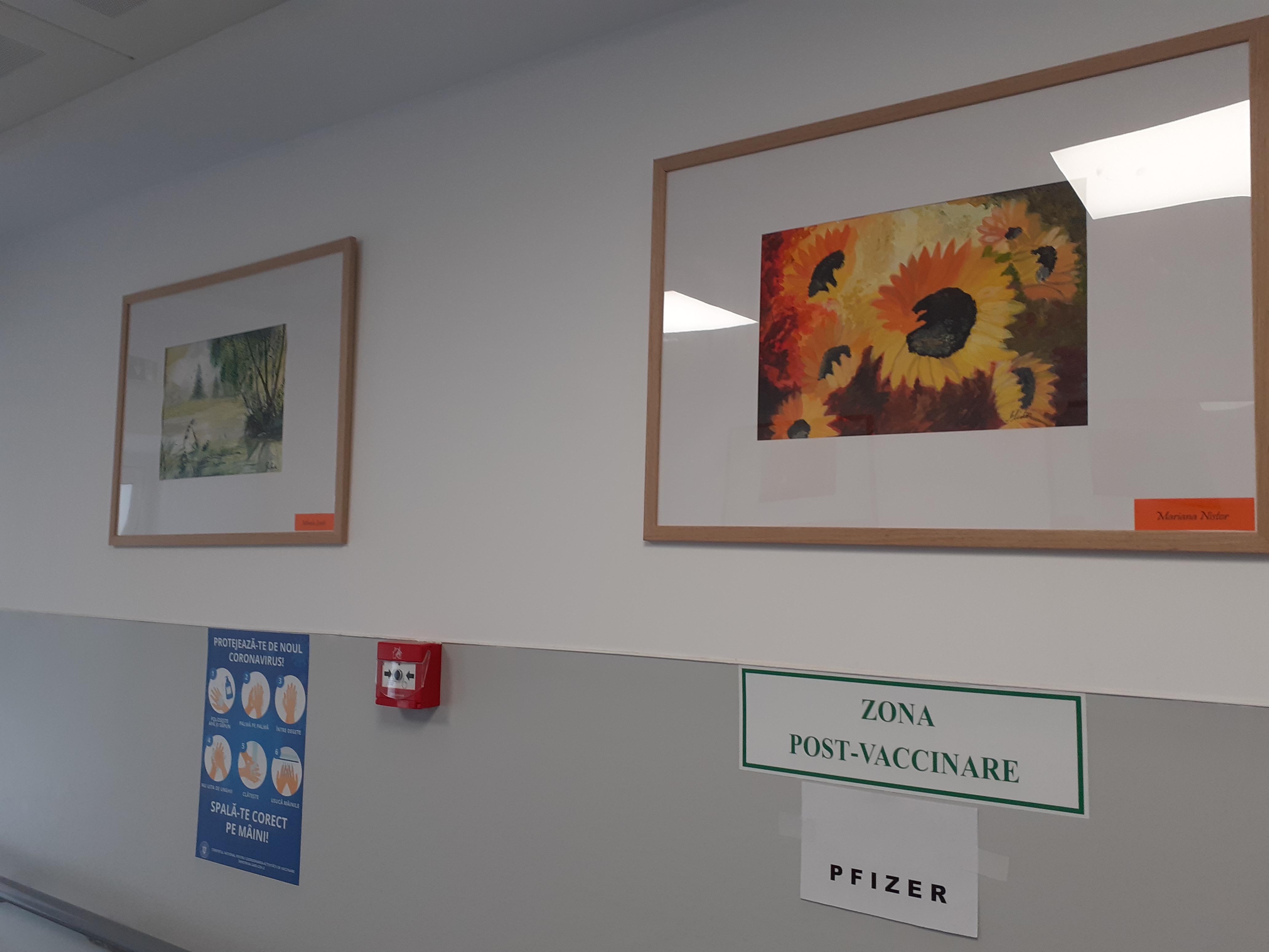 Tablourile înfrumusețează nu doar holurile centrului de vaccinare, ci și etajul întâi al policlinicii medicale, am aflat de la medicul Monica Moldoveanu.
