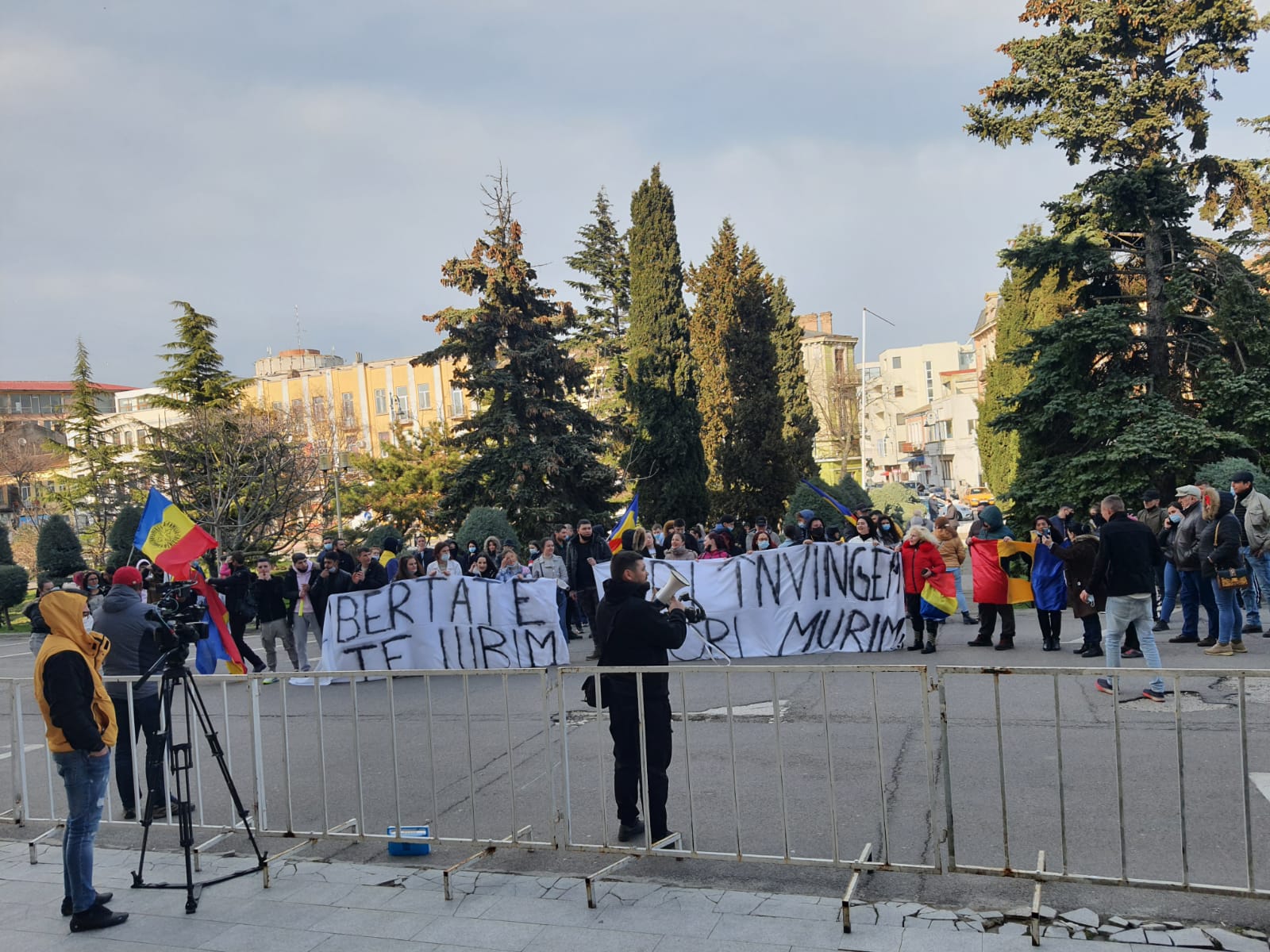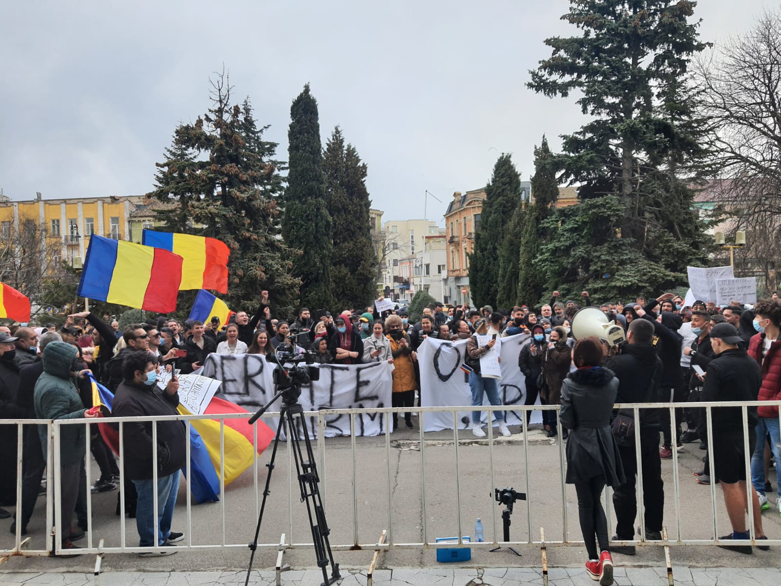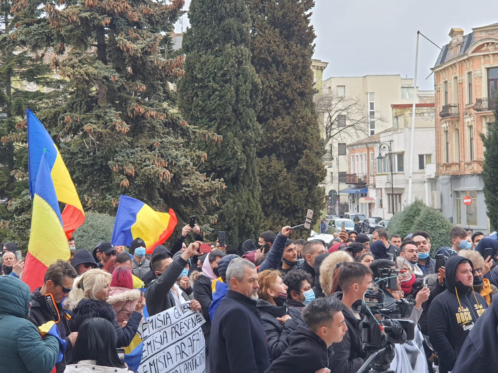 Aproximativ 200 de persoane s-au adunat, în faţa Prefecturii Constanţa, pentru a protesta faţă de măsurile restrictive impuse de autorităţi pentru a stopa răspândirea virusului Sars-Cov-2.
