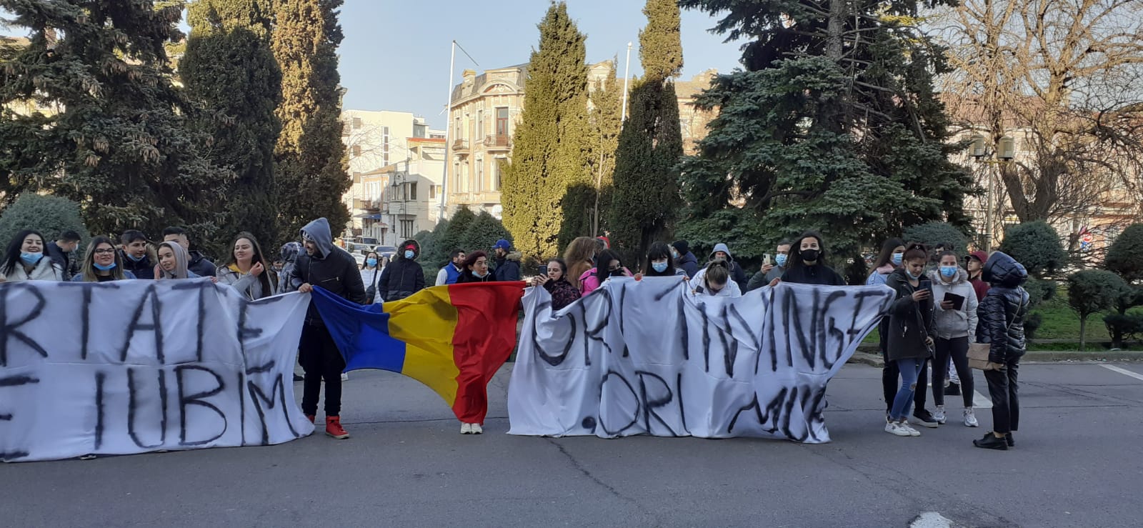 Câteva zeci de persoane s-au adunat, în faţa Prefecturii Constanţa, pentru a treia zi consecutiv, pentru a protesta faţă de măsurile restrictive impuse de autorităţi pentru a stopa răspândirea virusului SARS-CoV-2.