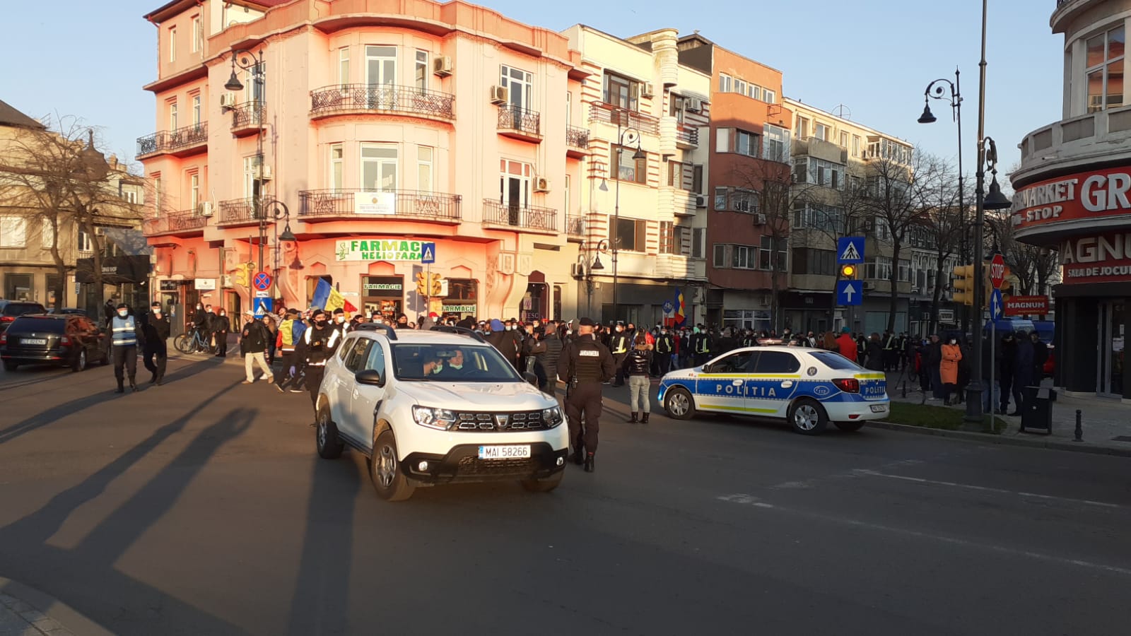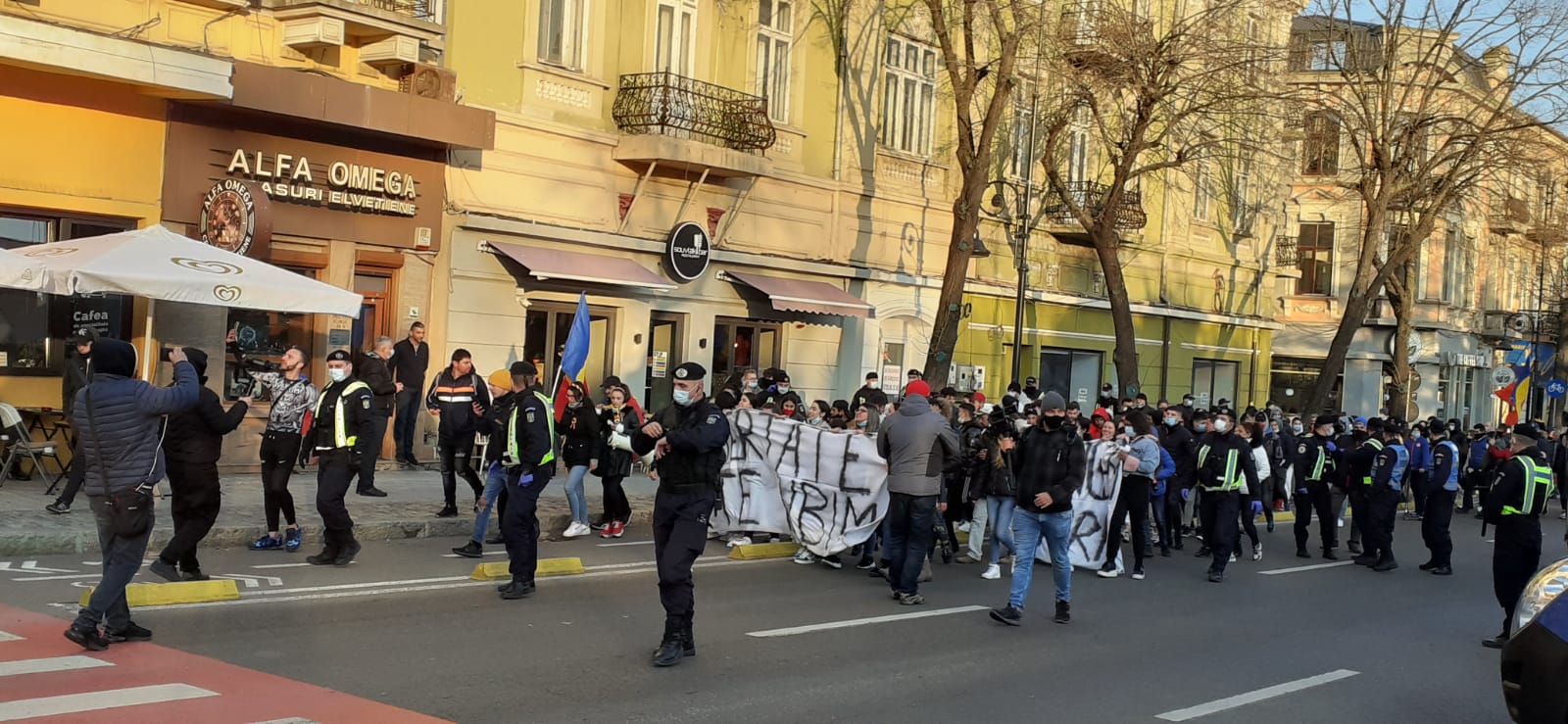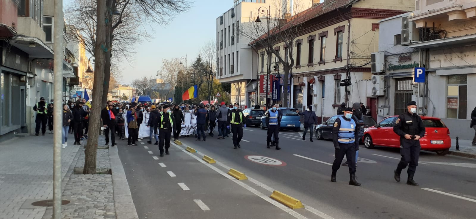 Protestatarii au plecat pe traseu spre Casa de Cultură, Brick, Soveja, City Park şi se întorc spre Prefectură.