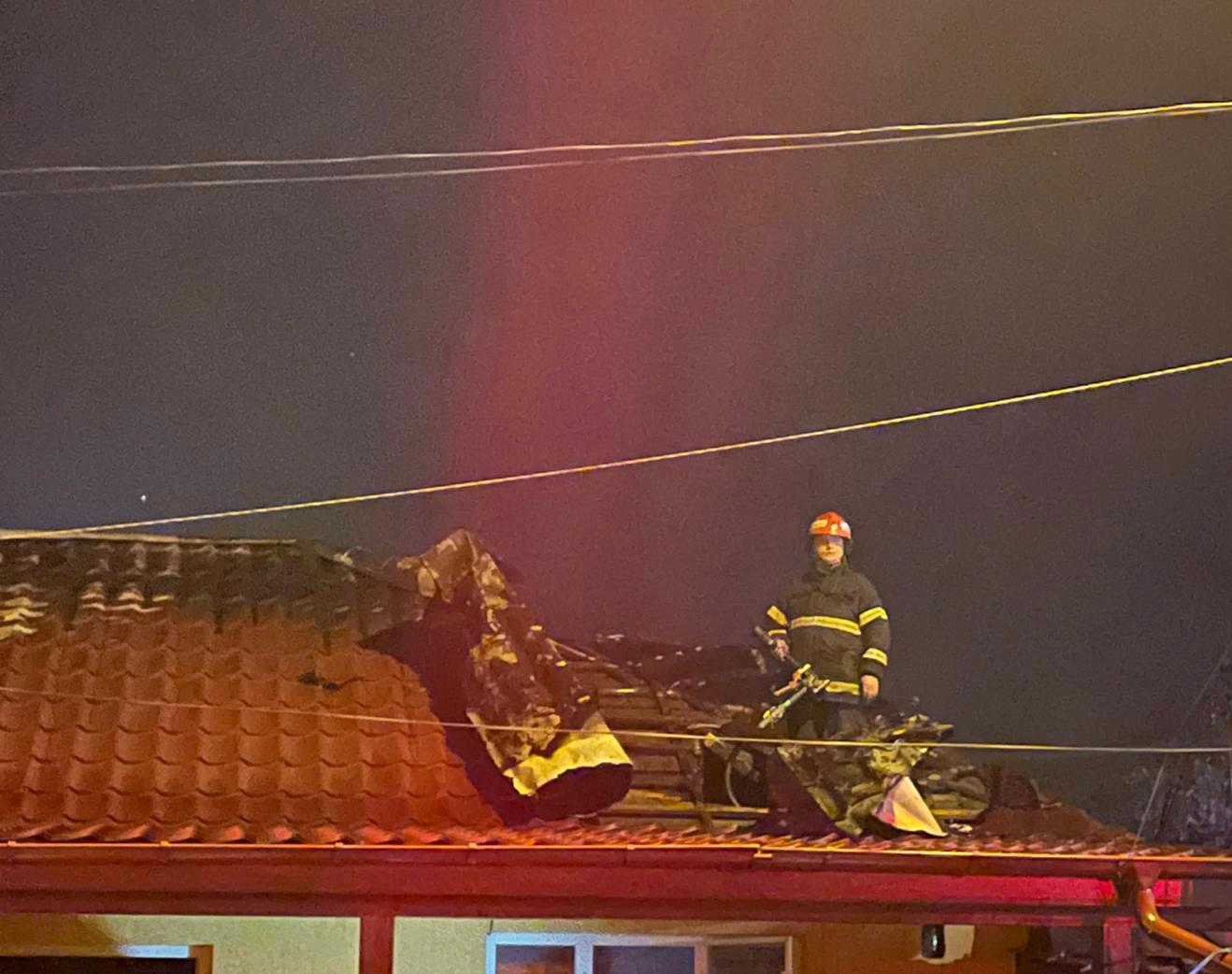 În incendiu au ars 20 de metri pătraţi şi s-au deteriorat 80 de metri pătraţi din acoperişul locuinţei, s-au degradat tavanul din rigips pe o suprafaţă de aproximativ 60 de metri pătraţi şi mobilierul din trei camere.