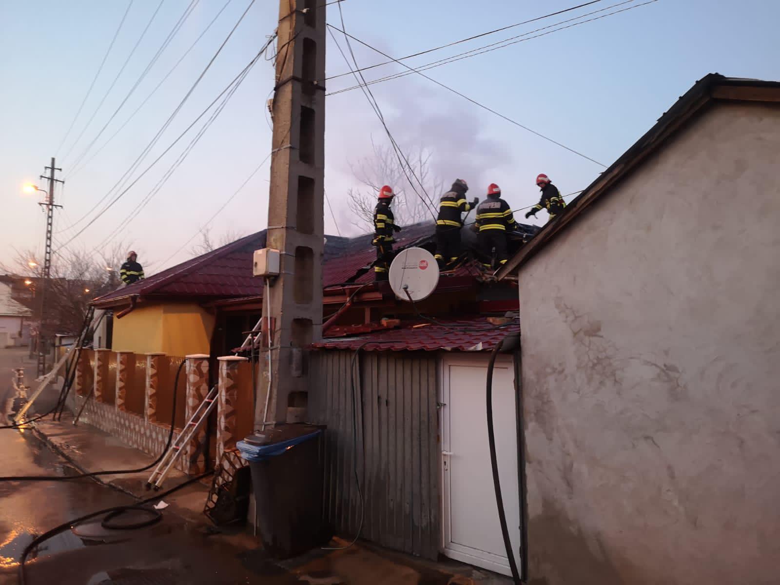 La sosirea echipajelor de intervenţie, zece subofiţeri cu două autospeciale cu apă şi spumă, incendiul se manifesta cu flacără şi degajare mare de fum la nivelul acoperişului casei, cu pericol de propagare la locuinţele învecinate.