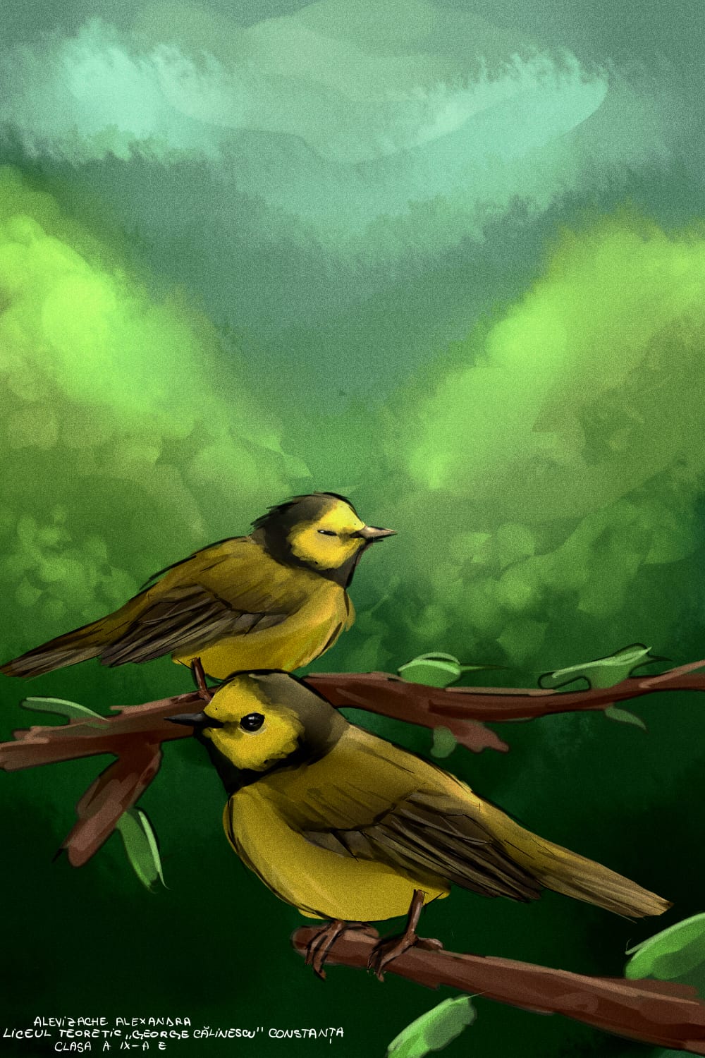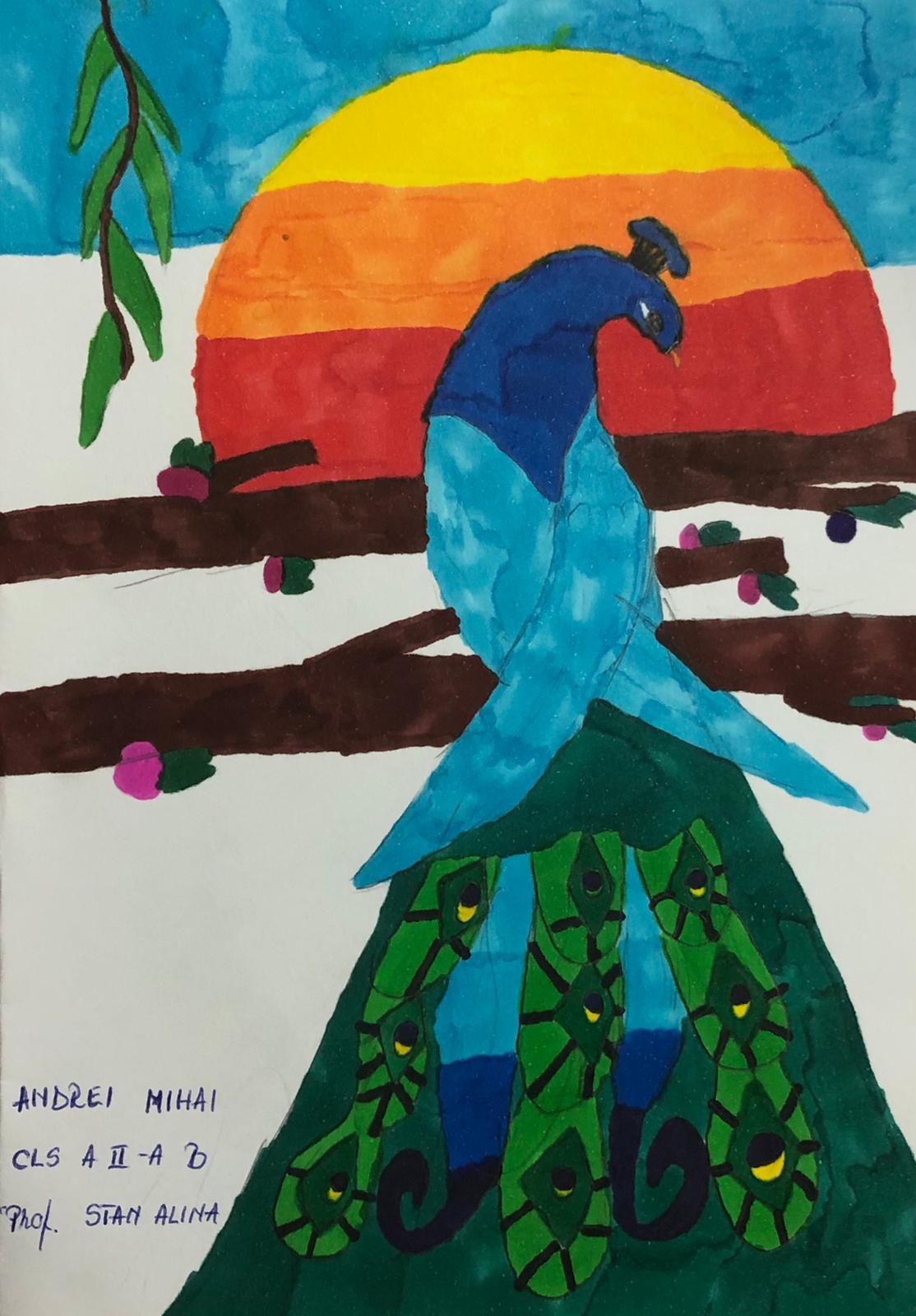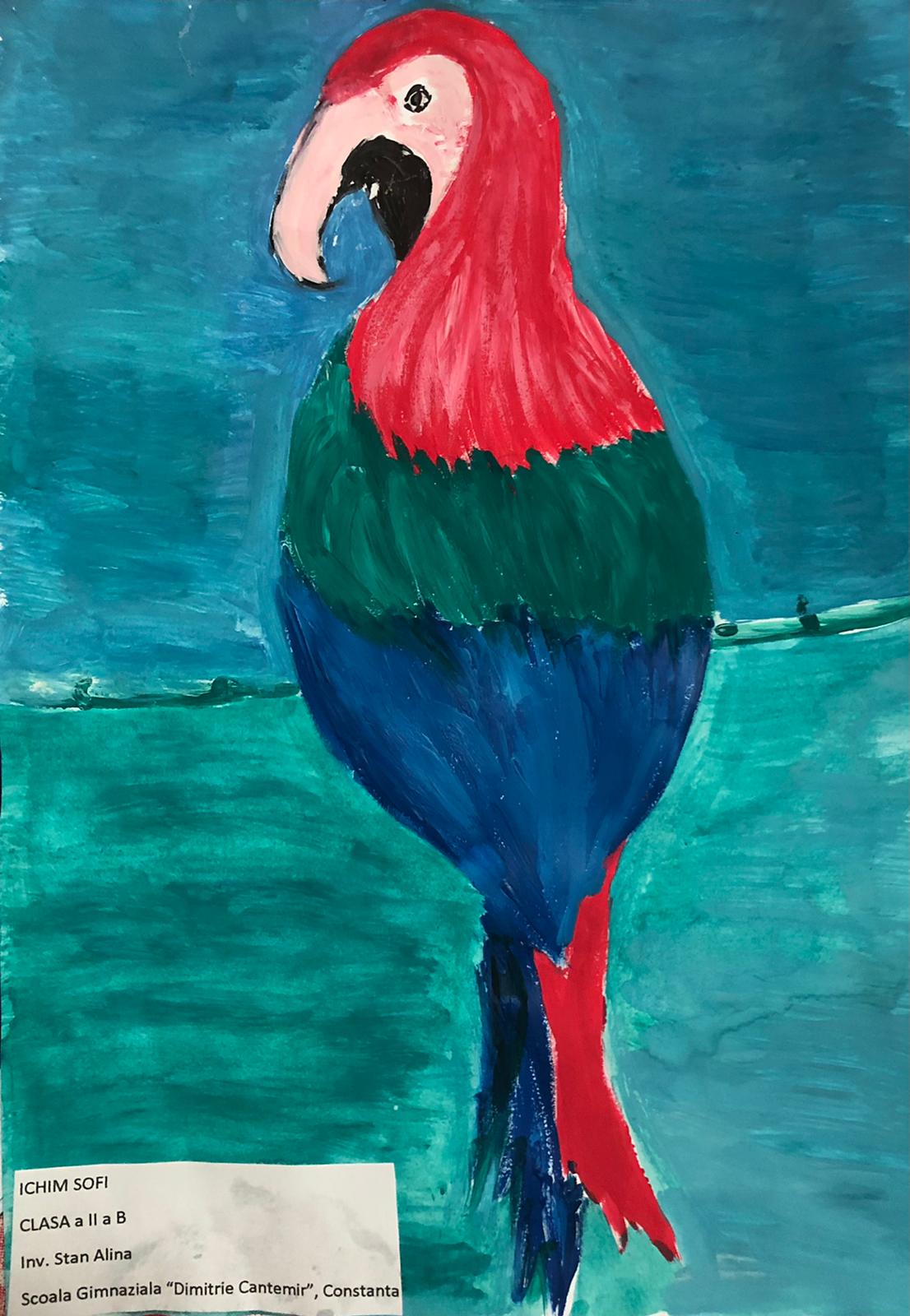 „Am ales să pictez păsări viu colorate, iar pictura mea exprimă bucurie și sensibilitate. Deși penele lor strălucesc, culoarea lor nu le împiedică să se camufleze prin verdeața plantelor. Întreaga natură primește primăvara cu brațele deschise!”, a spus Maria, elevă tot în clasa a V-a.
