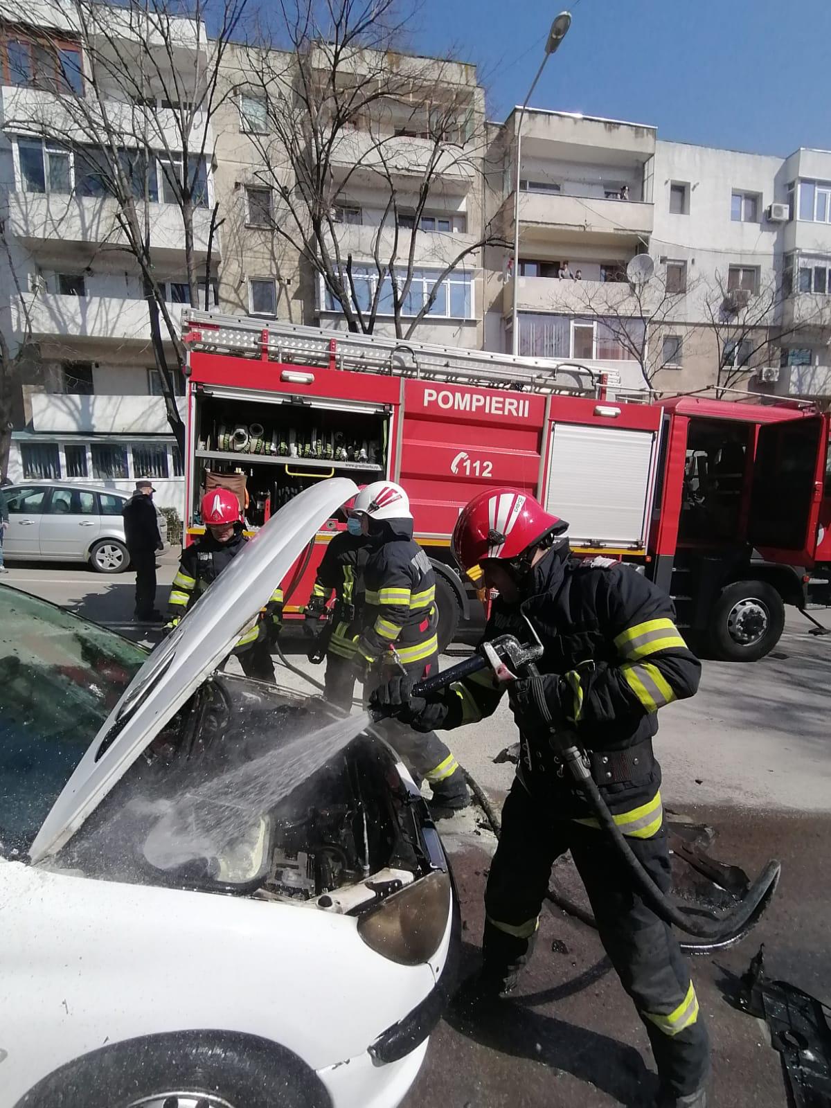 În urma incendiul au ars elemente combustibile de la compartimentul motor și a fost spart un geam lateral al mașinii.