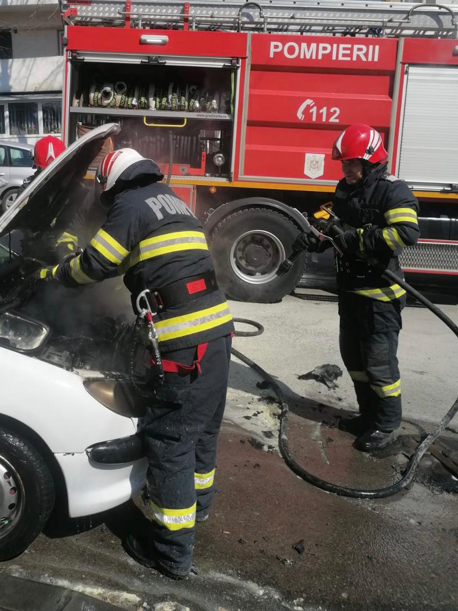 La sosirea forțelor profesioniste, incendiul se manifesta cu degajare de fum la partea din față a mașinii, cu pericol de propagare la un autoturism parcat în apropiere.