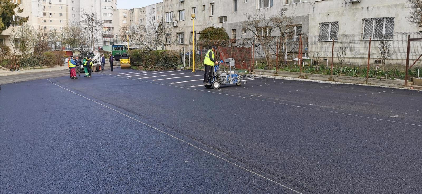 În această săptămână se vor finaliza și lucrările de amenajare a parcărilor situate pe terenul delimitat de străzile Tulcei și Badea Cârțan și pe aleile adiacente. Suprafața destinată parcării autovehiculelor va fi îmbrăcată în binder, iar la final se va executa stratul de uzură.