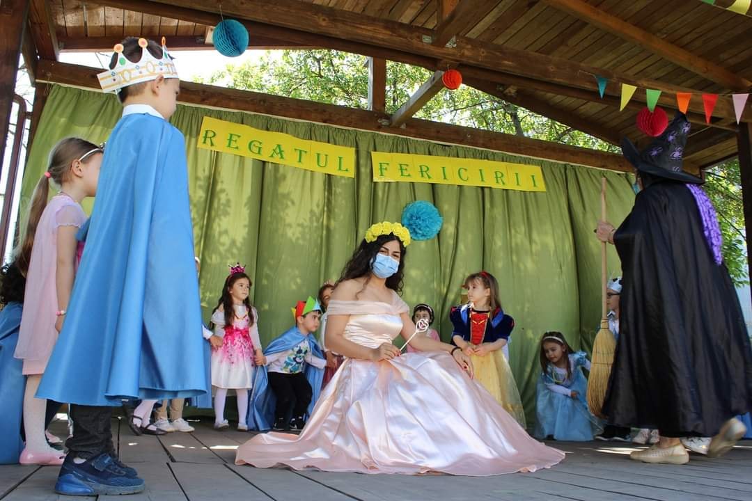 Multă veselie a fost în Regatul Prințeselor. „Sunt prințesa Albinuțelor, iar prințesele se joacă”, a spus o fetiță de la grupa mica „Albinuțele”. „Eu sunt Albă ca Zăpada!”, afirmă o altă micuţă, care ne asigură că ştie foarte bine povestea personajului pe care îl interpretează: „Regina a trimis-o în pădure și după aia vrăjitoarea a venit iar și iar, i-a dat un măr și a murit”. „Cine a salvat-o?“ – o întrebăm, iar răspunsul vine imediat: „Prințul!”