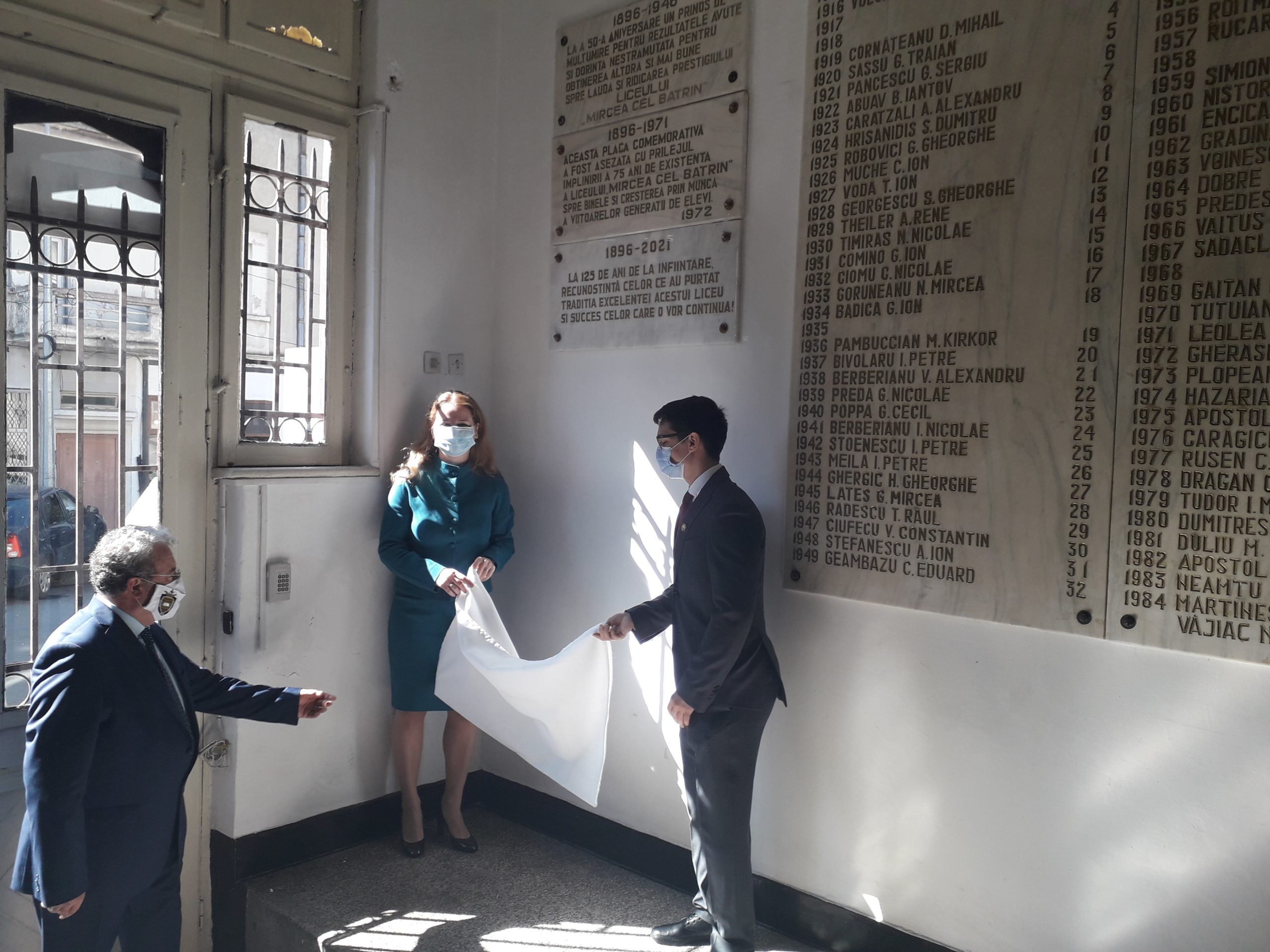 În cinstea acestui eveniment a fost dezvelită o placă memorială care reprezintă un templu creat în jurul basoreliefului realizat de sculptorul constănțean Ion Jalea, absolvent al liceului.