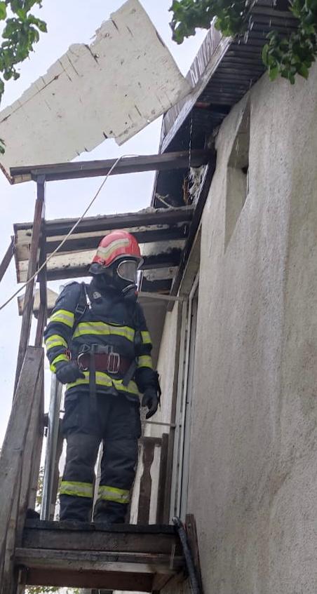 Au ars 2 mp din acoperiș și s-au degradat 2 metri pătrați de învelitoare din tablă și aproximativ un metru pătrat din podul locuinței.
