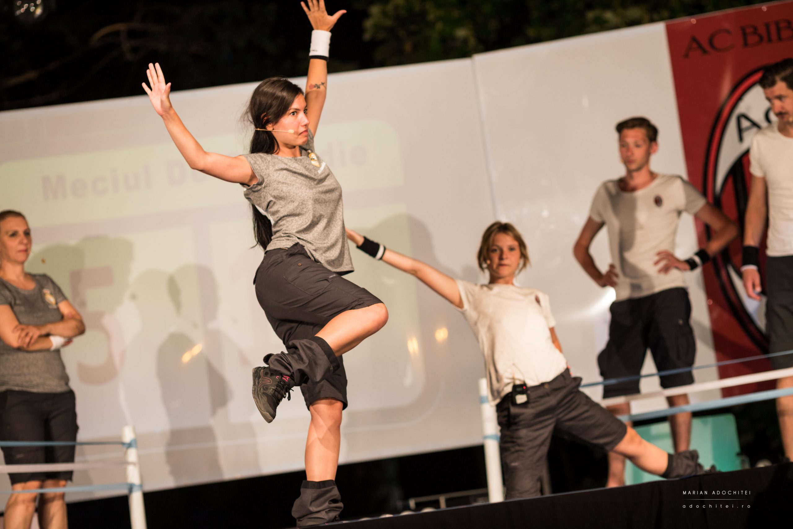 În distribuție: Mirela Pană, Florina Stănculeț, Andrei Cantargiu, Remus Archip, Cătălina Mihai, Lucian Iftime, Florin Aioane, Ecaterina Lupu, Ștefan Mihai. Actorii sunt acompaniați live de pianistul Mădălin Nicolae Mușat, care improvizează și el o muzică adecvată poveștilor inventate de actori pornind de la un cuvânt, un nume sau o meserie. Iar arbitrul va fi, la reprezentația de sâmbătă, chiar directorul teatrului, Erwin Șimșensohn.