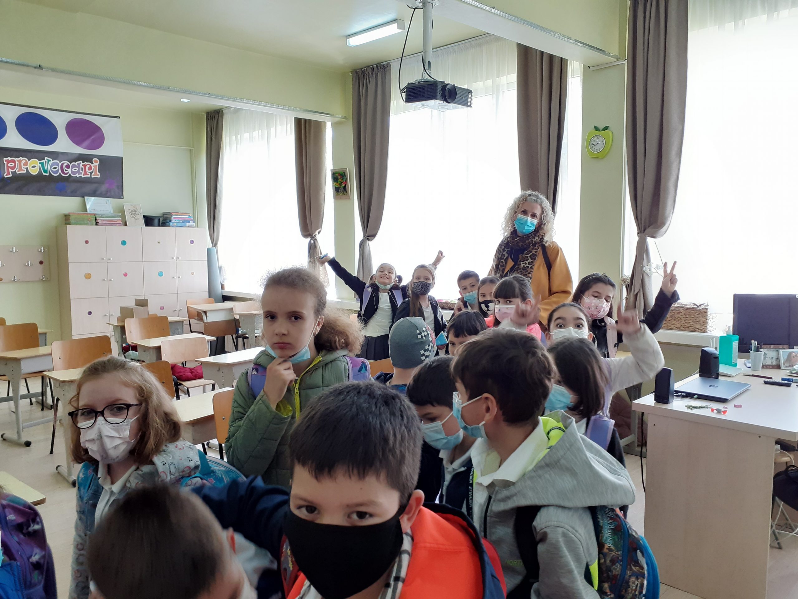 „Mie mi-a plăcut foarte mult când am făcut matematica afară”, a punctat categoric o fetiță din clasa întâi, luând-o înaintea unui coleg, care are o cu totul altă părere: Când ne-am întors din online la școală, de la școala online, la școala normală.”
