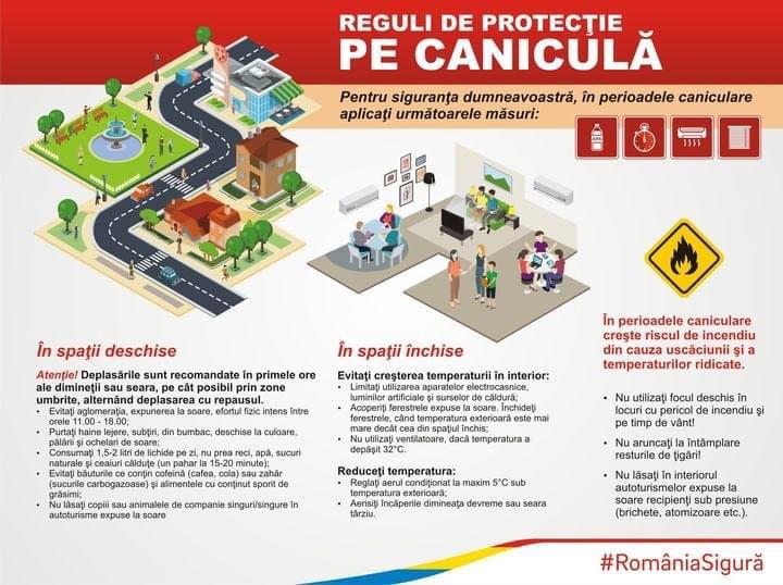 –  Evitaţi aglomeraţiile, expunerea la soare, efortul fizic intens între orele 11.00-18.00;