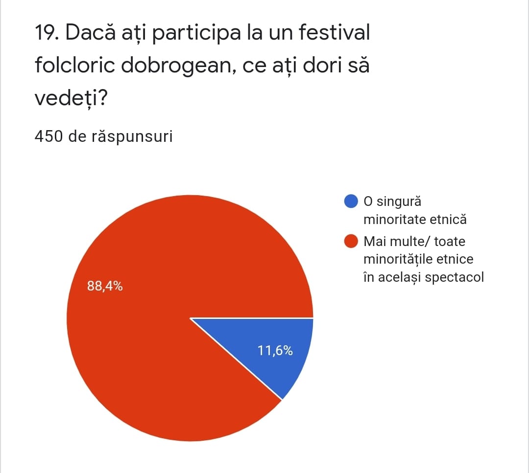 Despre specificul Dobrogei putem sublinia că buna conviețuire reiese și din acest sondaj, întrucât 88% din constănțeni își doresc spectacole folclorice cu participarea tuturor minoritatilor etnice.