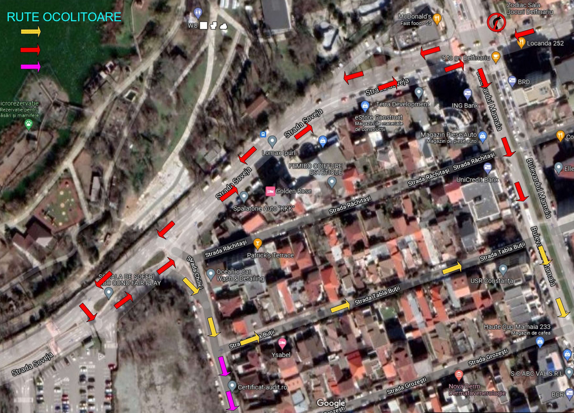 Ca rute alternative, recomandăm conducătorilor auto ca pe direcția strada Zorelelor- bulevardul Mamaia să folosească variantele: