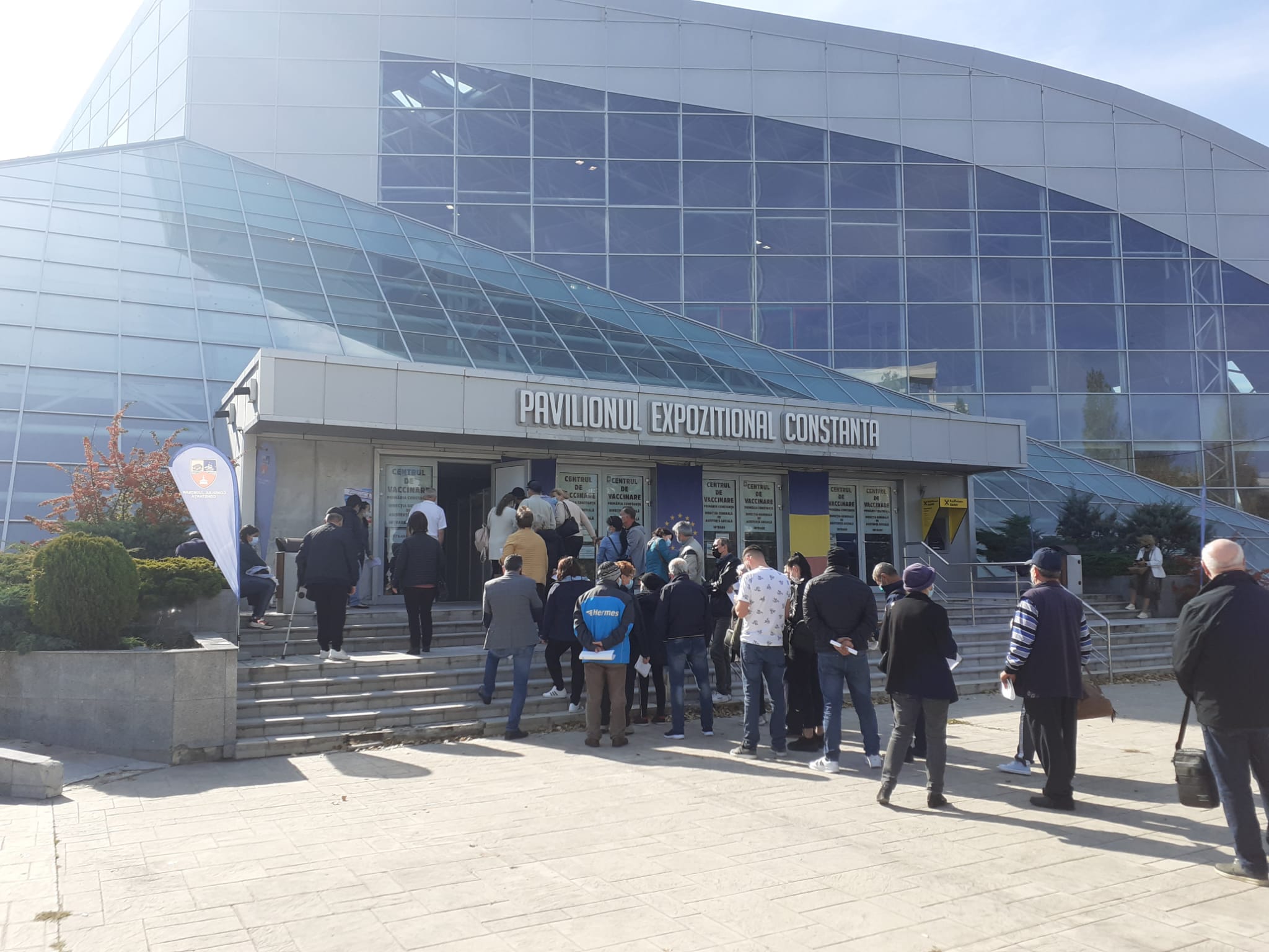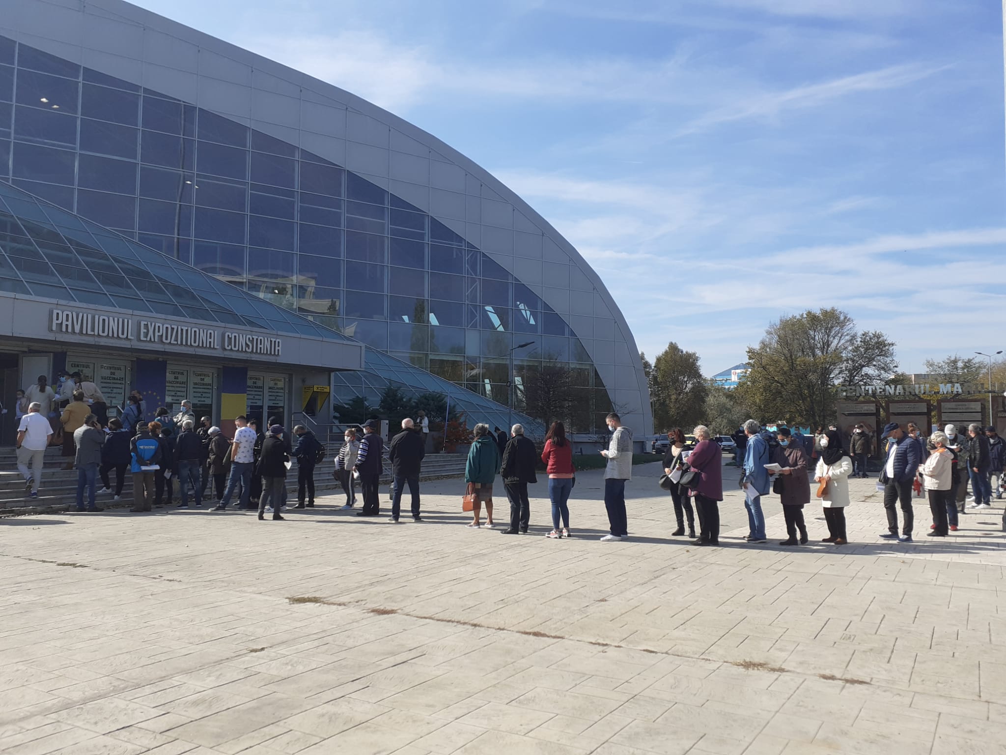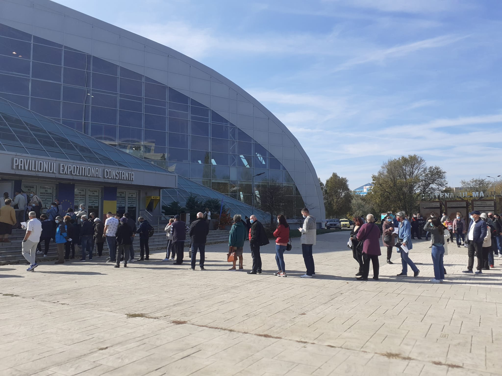 Sunt cozi la cel mai mare centru de vaccinare din județul Constanța, cel de la Pavilionul Expozițional. Zeci de oameni așteaptă afară să se imunizeze. Mulți dintre ei sunt la prima doză și s-au hotărât să se vaccineze fie de teama îmbolnăvirii, fie de teama restricțiilor.