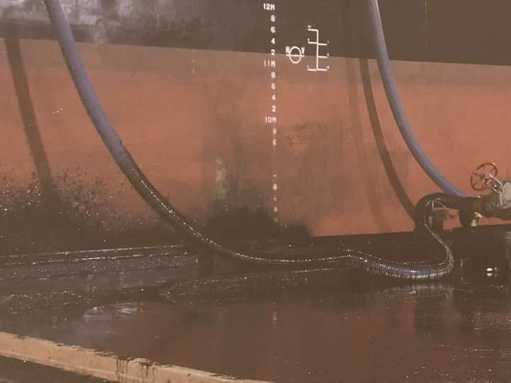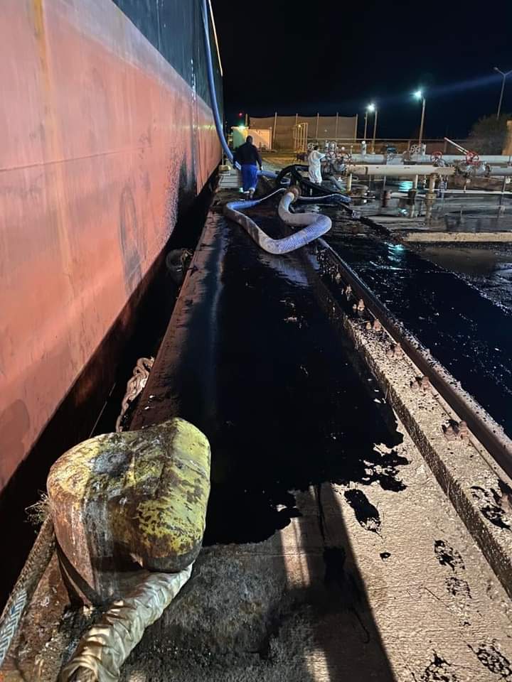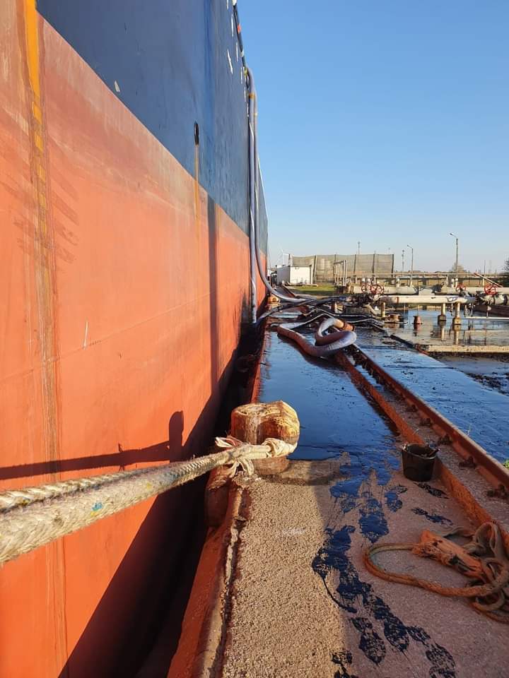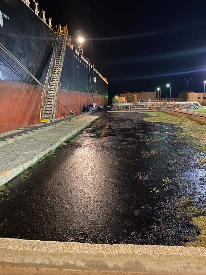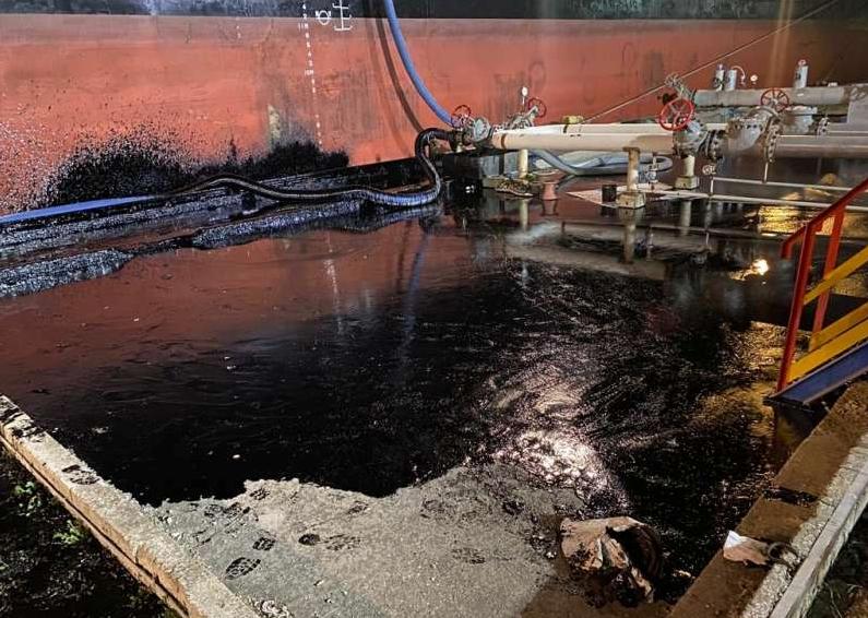 Poluarea s-a produs în timpul descărcării navei Angi, încărcată cu păcură, când unul din furtunurile terminalului s-a spart.