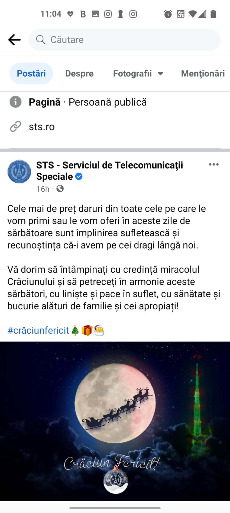 Un mesaj a postat și Serviciul de Telecomunicații Speciale: ”