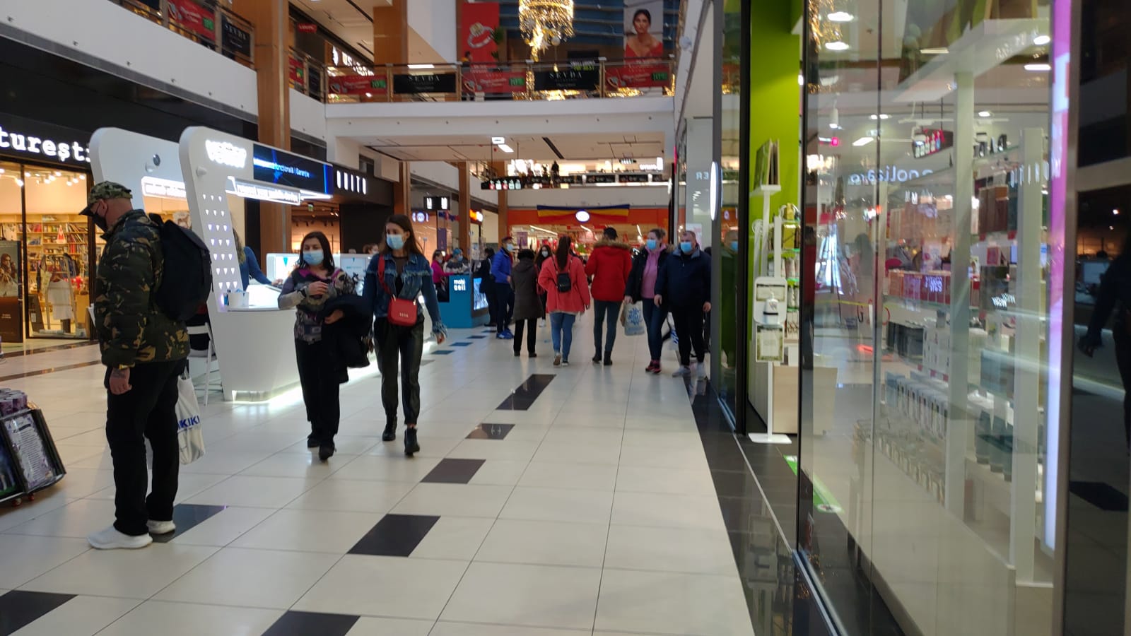 Chiar dacă accesul în mall-uri este condiționat pentru respectarea măsurilor împotriva răspândirii Covid-19, culoarele centrului comercial din parcul Tăbăcărie erau pline miercuri după amiază.