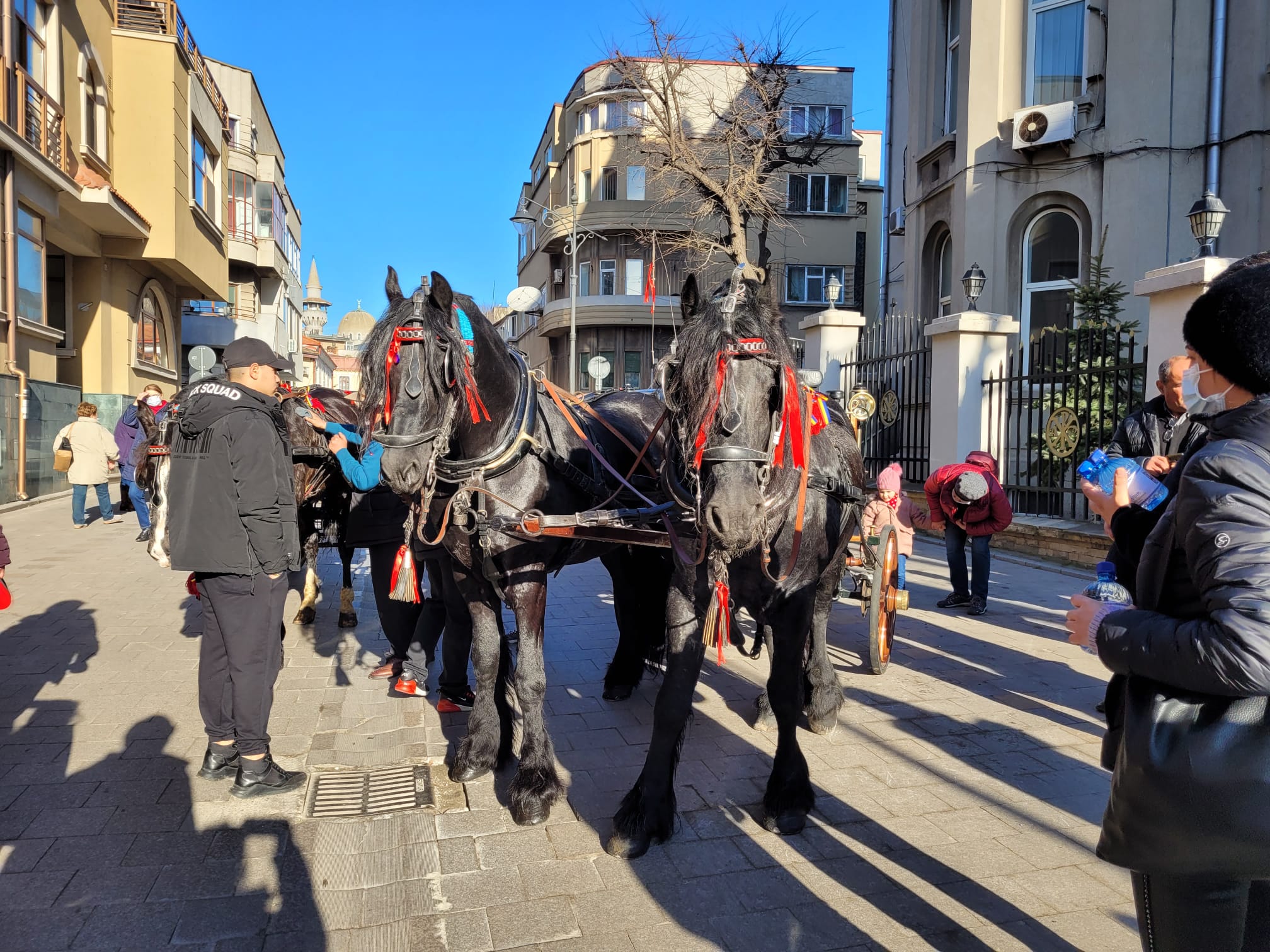 În jurul orei 12.00, s-a plecat în procesiune către Portul Tomis, ÎPS Teodosie fiind transportat de o caleaşcă trasă de doi cai negri.