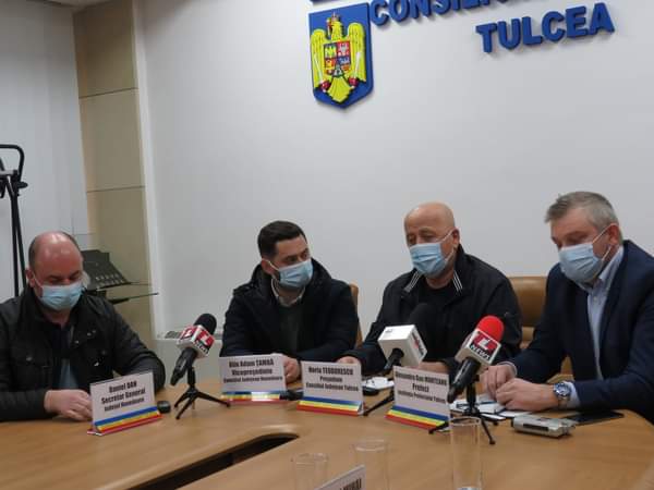 Președintele Consiliului Județean Tulcea, Horia Teodorescu, administratorul public al județului, Dumitru Mergeani, secretarul general al județului, Cristi Mihai și prefectul județului Tulcea, Alexandru Dan Munteanu, au participat, astăzi, alături de vicepreședintele Consiliului Județean Hunedoara, Alin Adam Țambă, secretarul general al județului Hunedoara, Daniel Dan, la o conferință de presă organizată pentru a prezenta modul în care omologii din Hunedoara s-au implicat în sprijinirea ucrainenilor care, în aceste zile, trec granița spre România prin punctul de frontieră de la Isaccea.