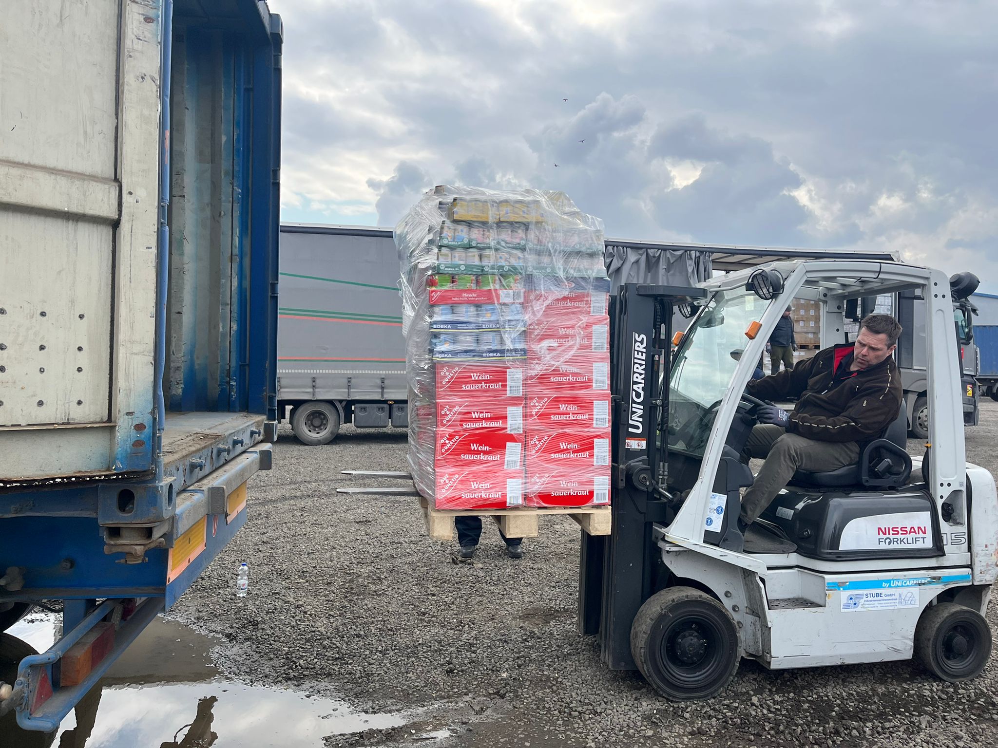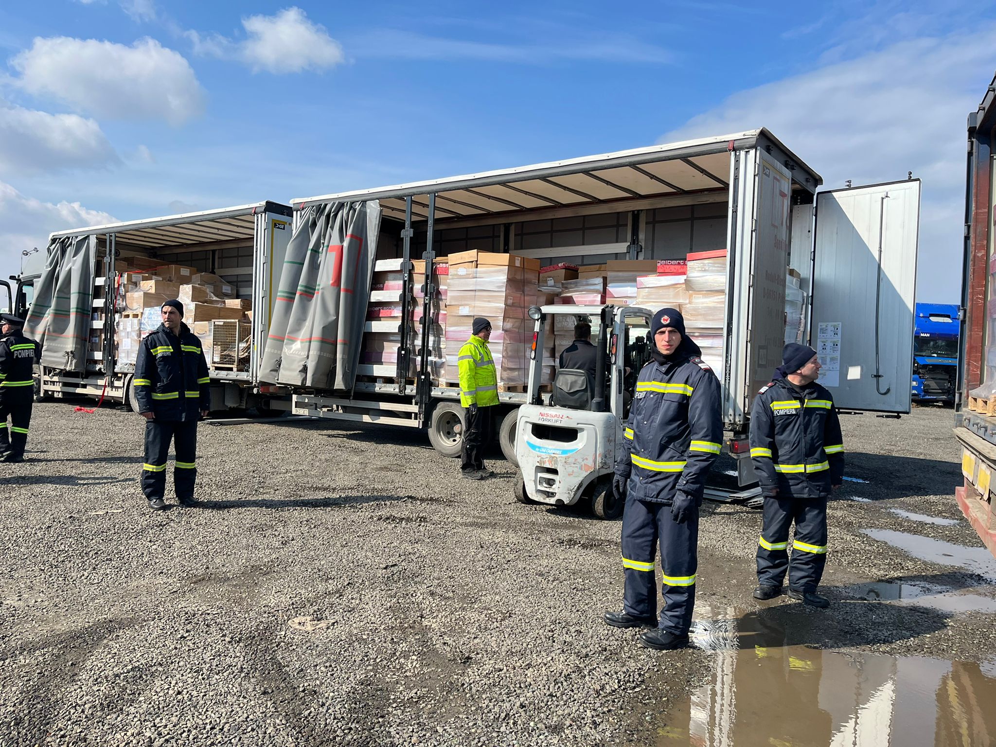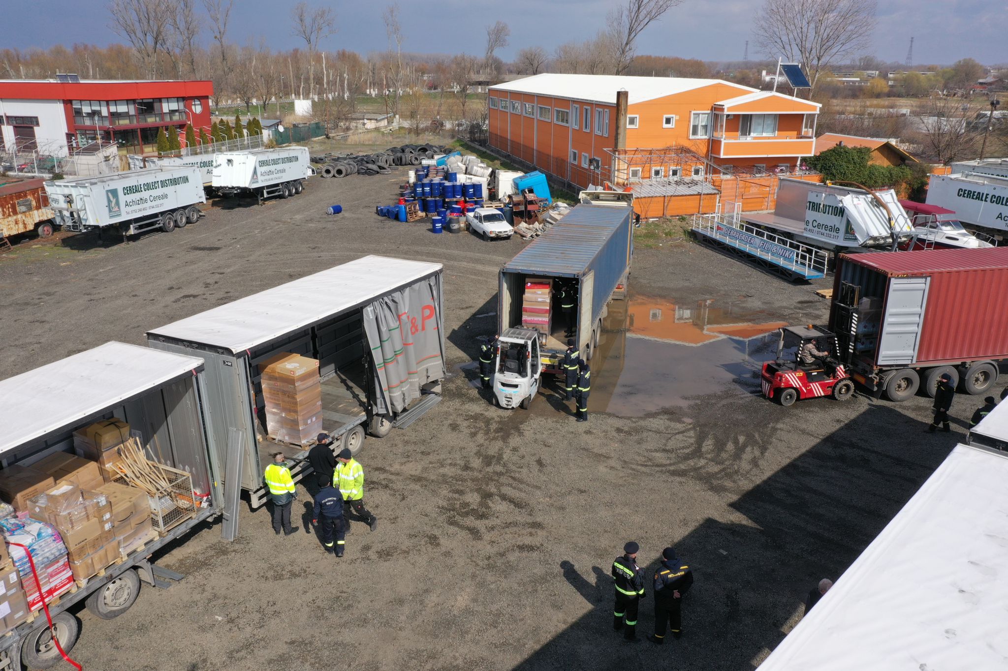 În municipiul Tulcea se organizează astăzi, 8 martie 2022, transbordarea unor ajutoare pentru autoritățile din Ucraina, sosite cu 7 tiruri din Germania.