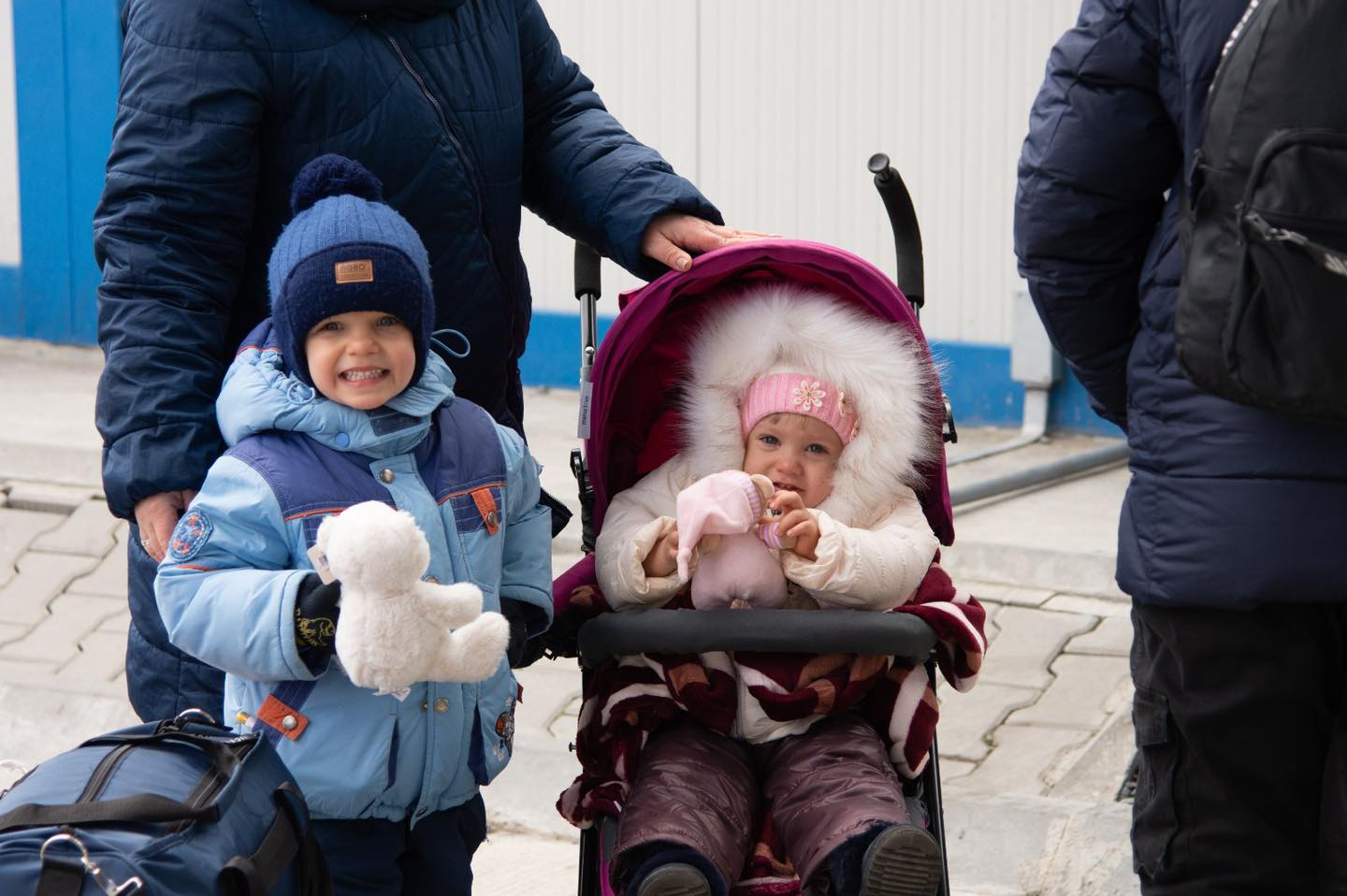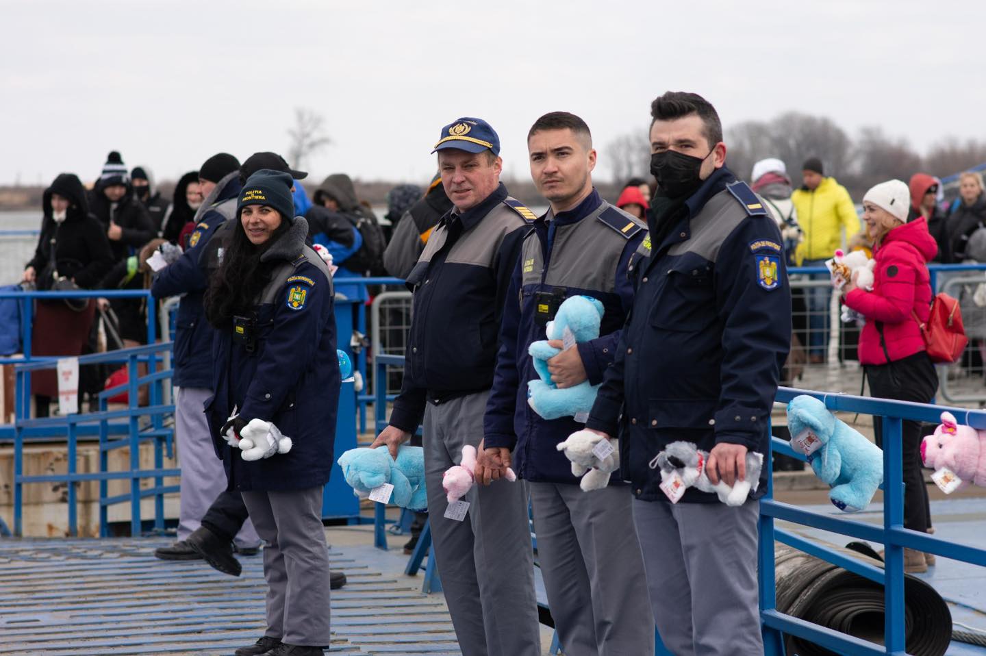 ”E frig la Isaccea şi vânt, însă zâmbetul copiilor la vederea jucăriilor prietenoase e semn de speranță şi viată, dincolo de teroarea războiului” – spun reprezentanții Poliției de Frontieră.