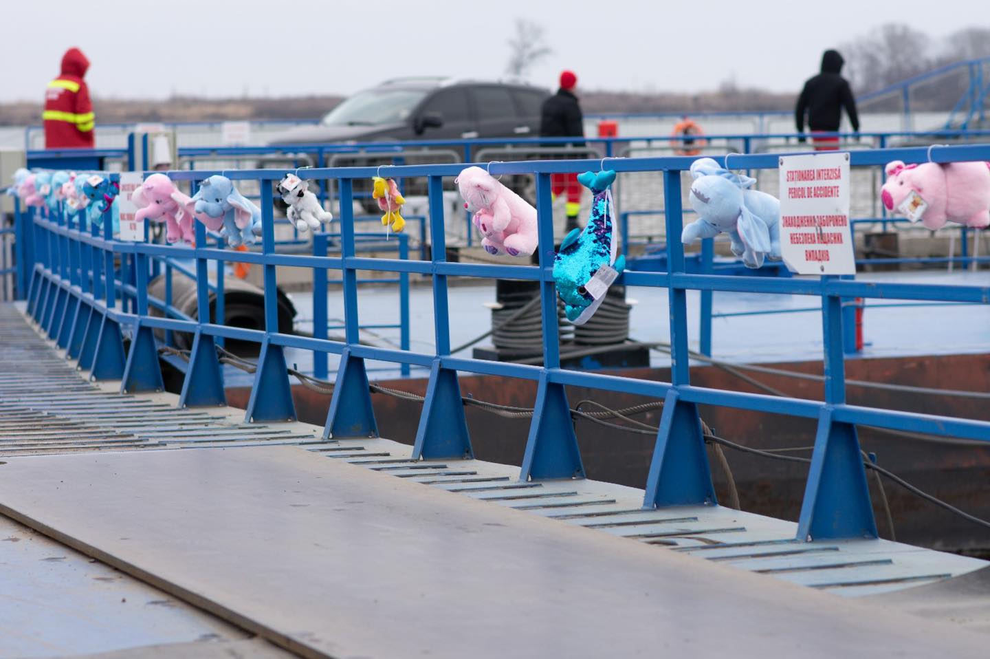 Oamenii simpli, polițiștii de frontieră și voluntarii s-au îngrijit să amplaseze aceste jucării pe marginile podului, astfel încât la intrarea în România, copiii care vin din Ucraina să poate să-și ia o jucărie de pluș.