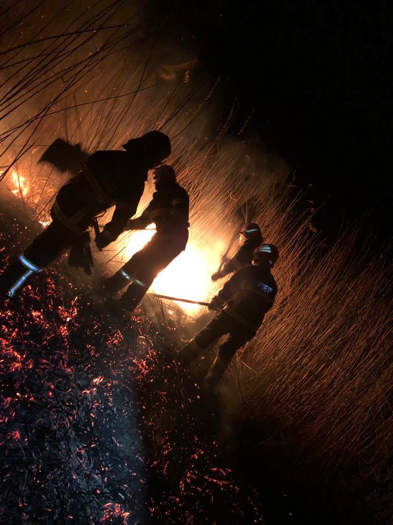 Un echipaj de stingere cu 6 subofițeri a fost direcționat către locul intervenției. La fața locului incendiul se manifesta cu flacără fiind mai multe focare și, împreună cu 7 voluntari ai SVSU Nufărul au acționat pentru stingerea lor. Intervenția a durat aproximativ 2 ore si jumătate și au ars aproximativ 20 de ha de vegetație uscată și stuf.