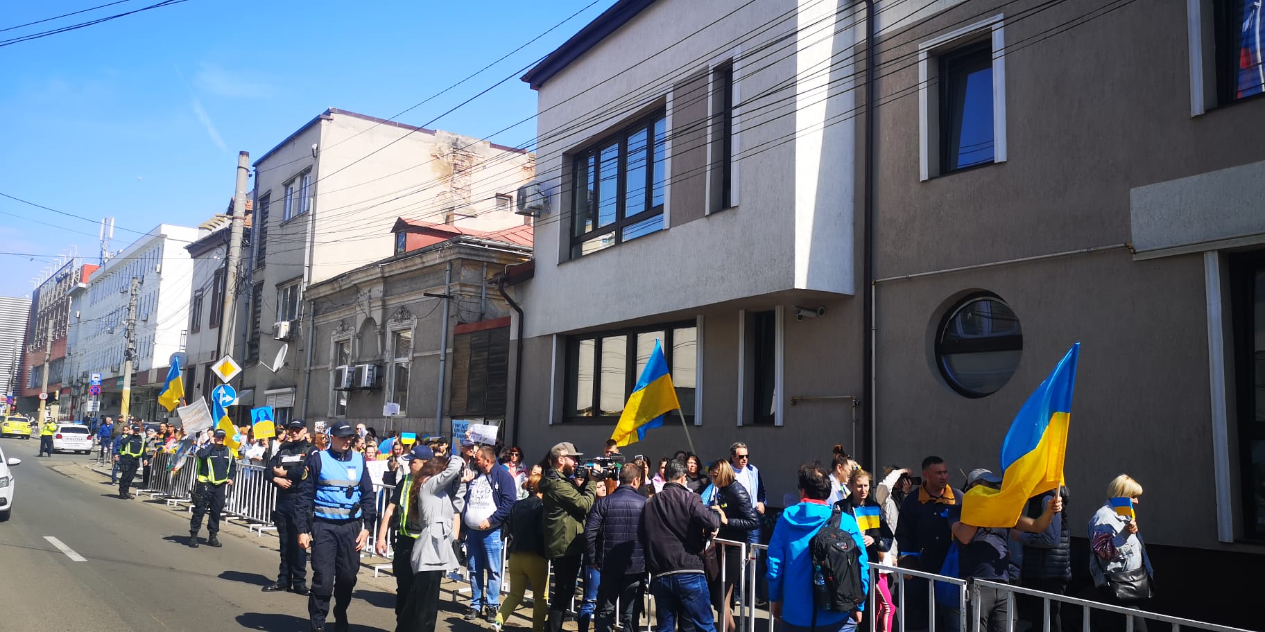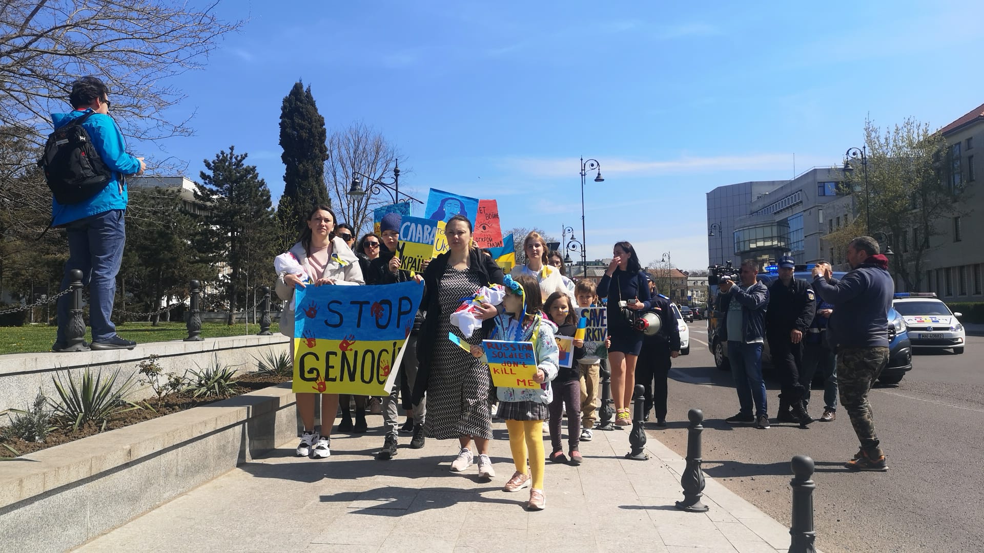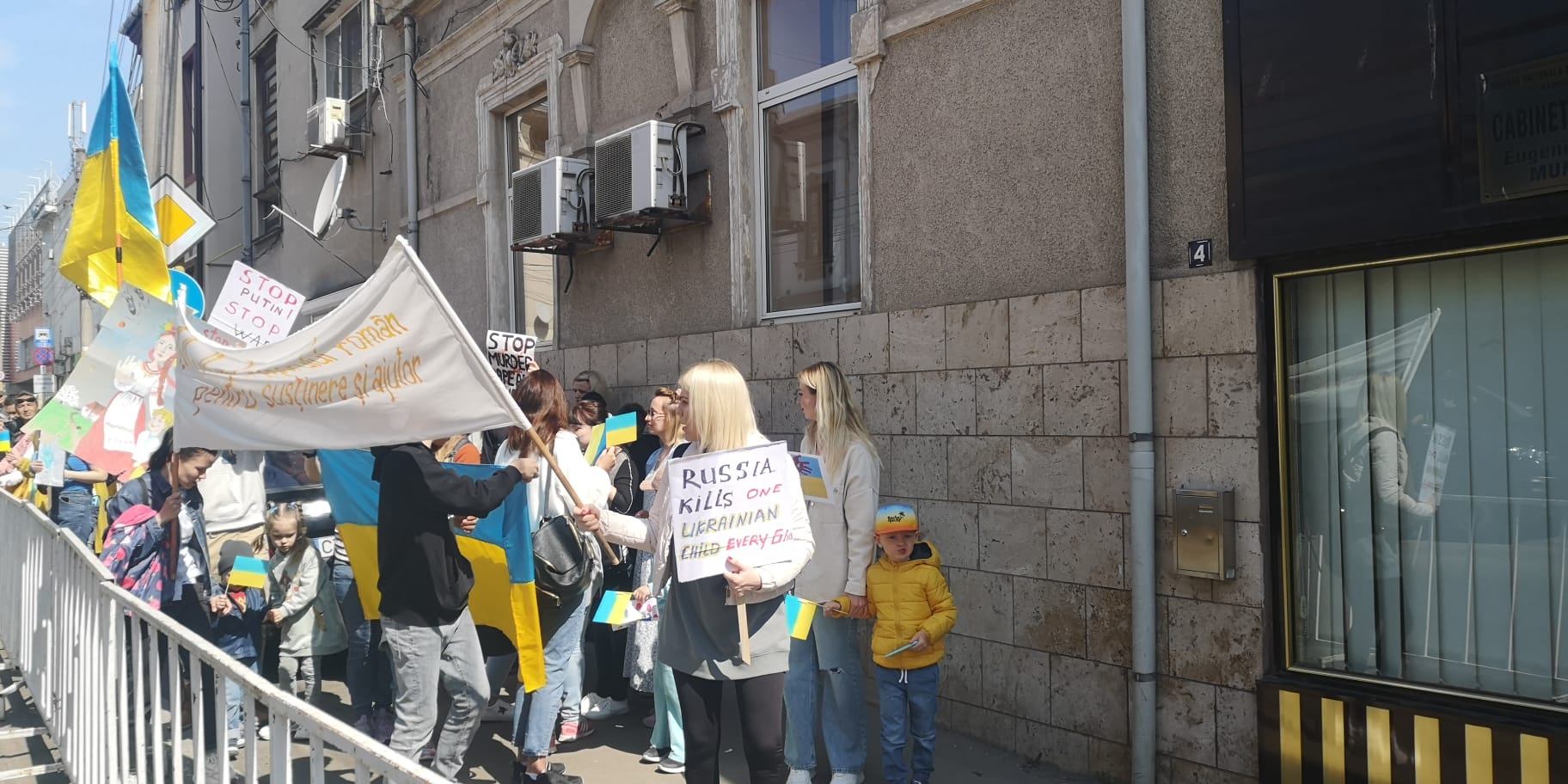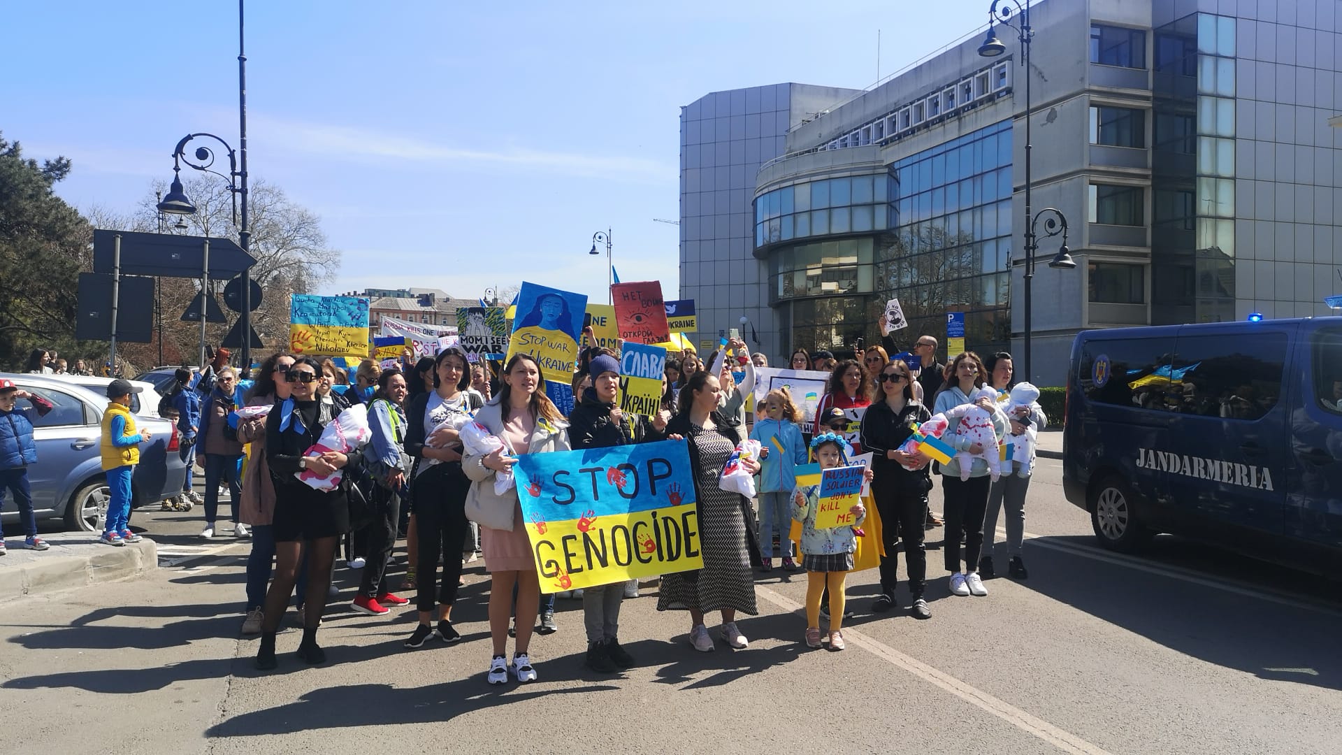 Peste 200 de femei din Ucraina și România au protestat astăzi în fața Consulatului Federaţiei Ruse și pe străzile din Constanța. La mitingul de protest participă mame din Ucraina, care au ajuns la Constanța în urma agresiunii armatei ruse asupra civililor.